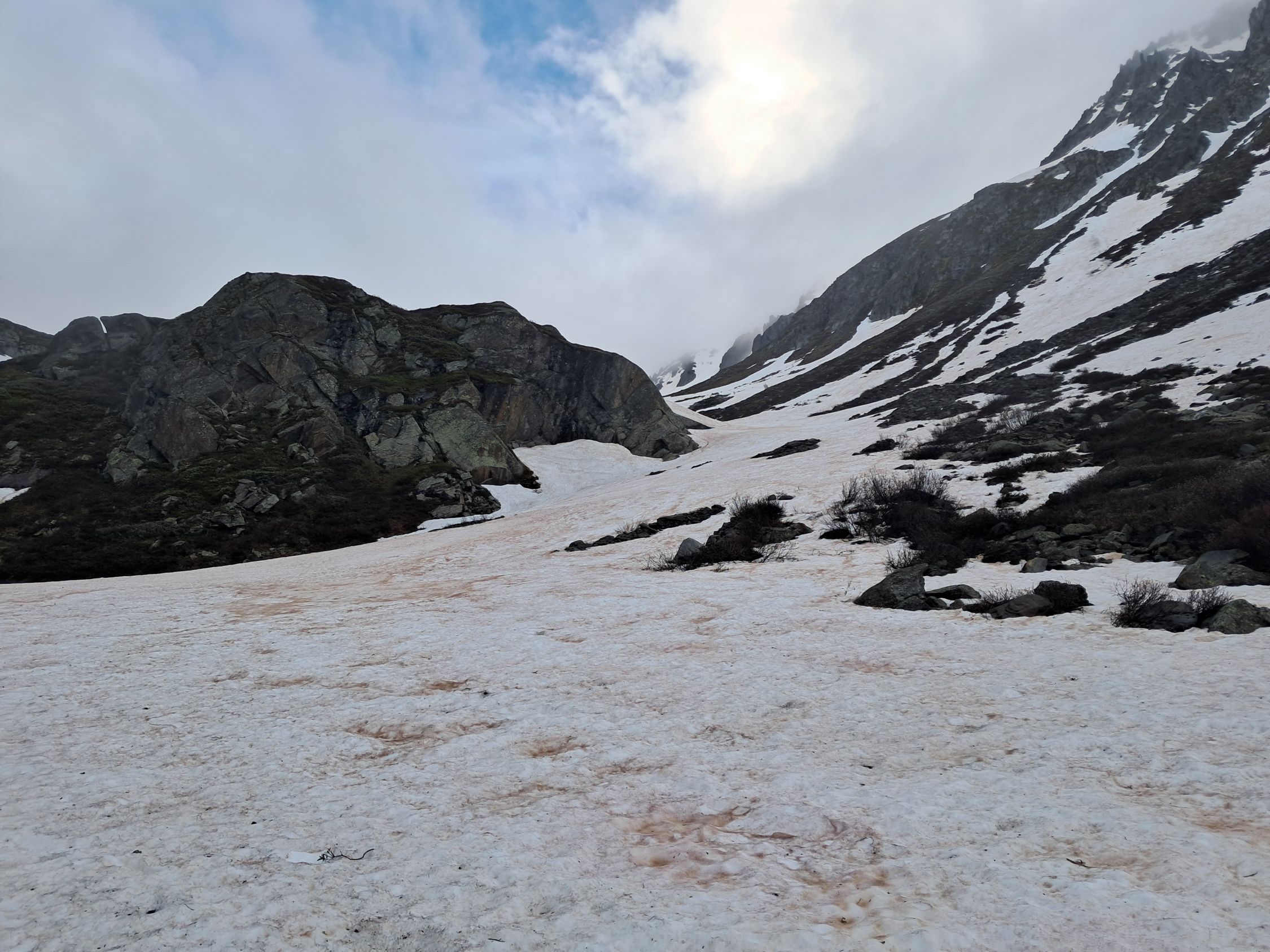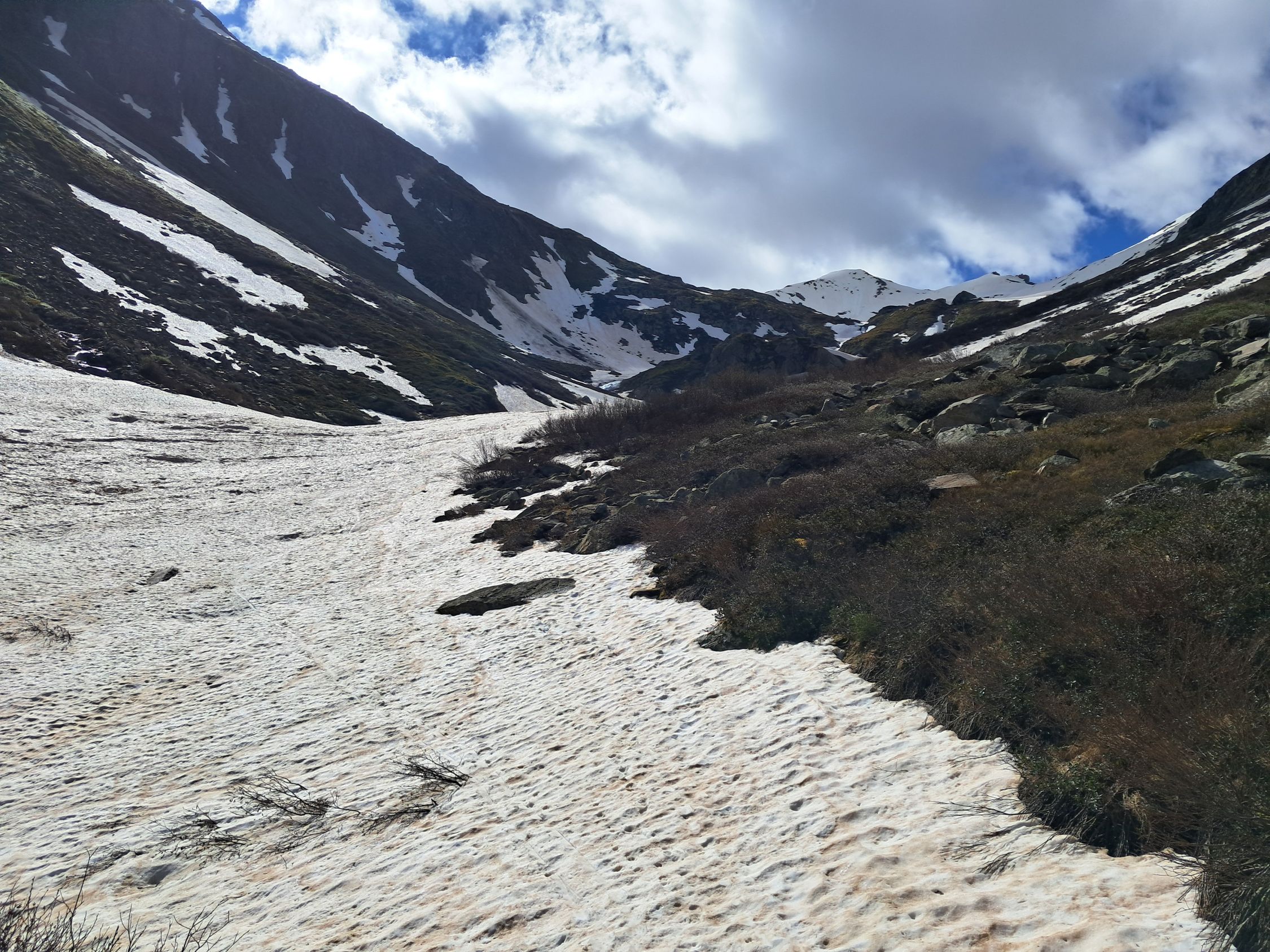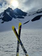 Ski ca. 30 min tragen..Ab ca. 2000m durchgehende Schneedecke. Großteils perfekter Sommerfirn. Brücke über den Bach aktuell noch demontiert..bei mir war Schuhe ausziehen angesagt