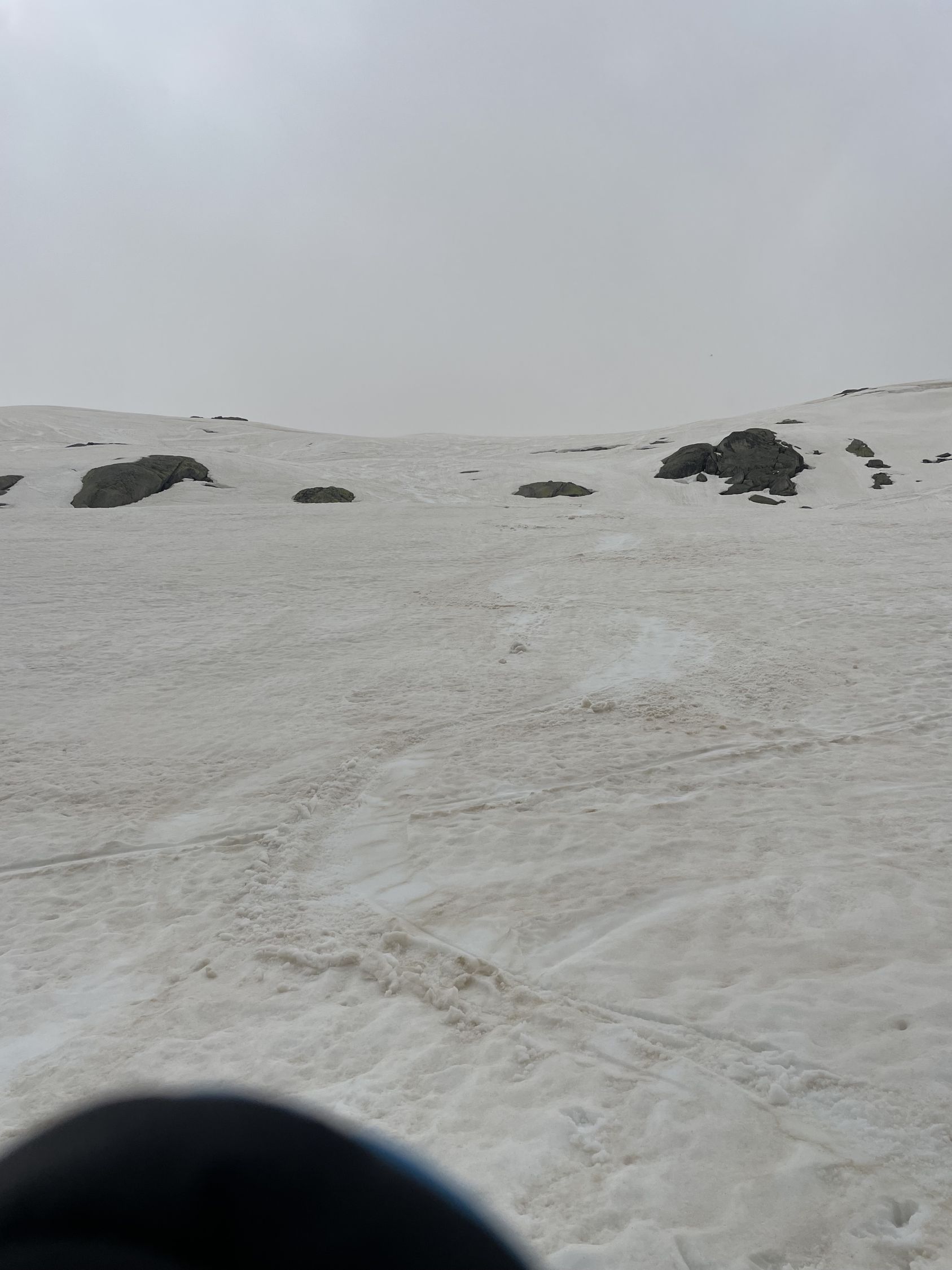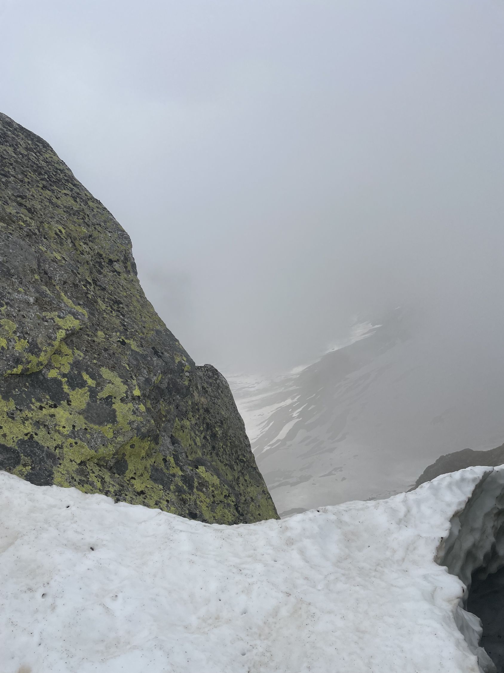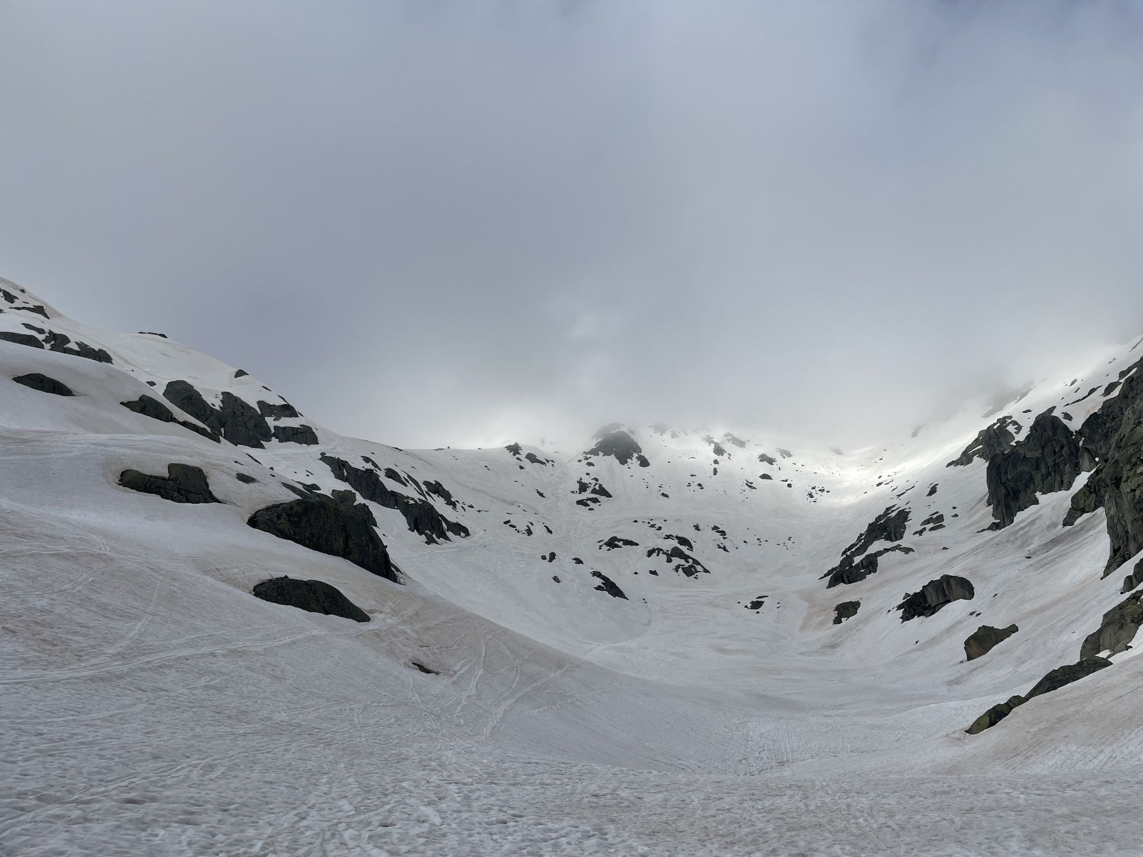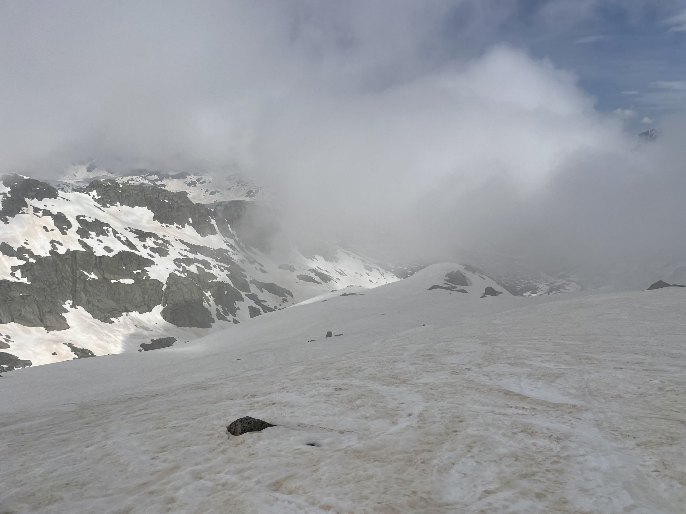 Wir wollten mal schauen, wie sich die Verhältnisse seit unserem letzten Abstecher vor 14 Tagen geändert haben. Erwartungsgemäss hat der Schnee abgenommen, es hat aber immer noch genug davon. Vom Start bis zum Gipfel völlig durchnässt, kein Wunder, immer wieder Regen und kaum je eine klare Nacht… Aber dafür ist der hässliche Bruchharst vom letzten Mal verschwunden. Im Aufstieg war das kurze steile Stück gar nicht so ohne, der nasse Schnee rutschte und bot keinen sauberen Halt. Weiter oben wurde die Fibbia dann ihrem Ruf als Nebelküche gerecht, durch die Spuren fand man den Weg aber einfach. Am Gipfel nettes Gespräch mit einer Tourengängerin aus Erstfeld, wir waren momentan die Einzigen oben. Generell heute nicht viele Leute unterwegs. Aussicht gab es heute nicht, aber angenehmerweise gute Sicht in der Abfahrt. Der Nassschnee liess sich gut schwingen, bis zum Pass hinunter eine erfreuliche Sache.