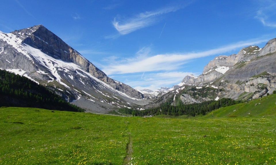 angenehmer und sonniger Tag. Leichte Brise, ab und zu auch stärkere Böen. Ganzer Pfad trocken und tiptop zu begehen. Einziges Schneefeld zum queren zur Zeit im grossen Graben vor Tatele.