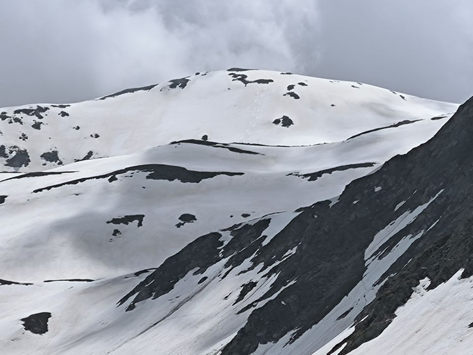Obwohl letzte Nacht kurz der Mond schien, war die nächtliche Abstrahlung dürftig. Der Aufstieg war ohne Harscheisen und ohne Abrutschen im weichen Schnee schnell gemacht. Die schöne homogene steile Flanke am Gipfel war mir zu weich und damit zu heikel, um sie abzufahren. Ich fuhr beim Grat runter mit gebührenden Abstand zu den Wechten. Die Abfahrt ging direkt zum Furkapass runter, um von dort zusätzlich auf die höchste Erhebung des Stotzigen Firsten zu gehen. Die dortige Nordflanke war im Gegensatz zur Südflanke beim Klein Furkahorn einladend und al Dente perfekt um runter zu fahren. Die Tour zieht sich mit dem 2 Gipfeln in die Länge. Aber bei der Ruhe am geschlossenen Furkapass und ohne jegliche andere Skitourer eine genussreiche Stimmung. Ab Samstag sieht es dort anderst aus....