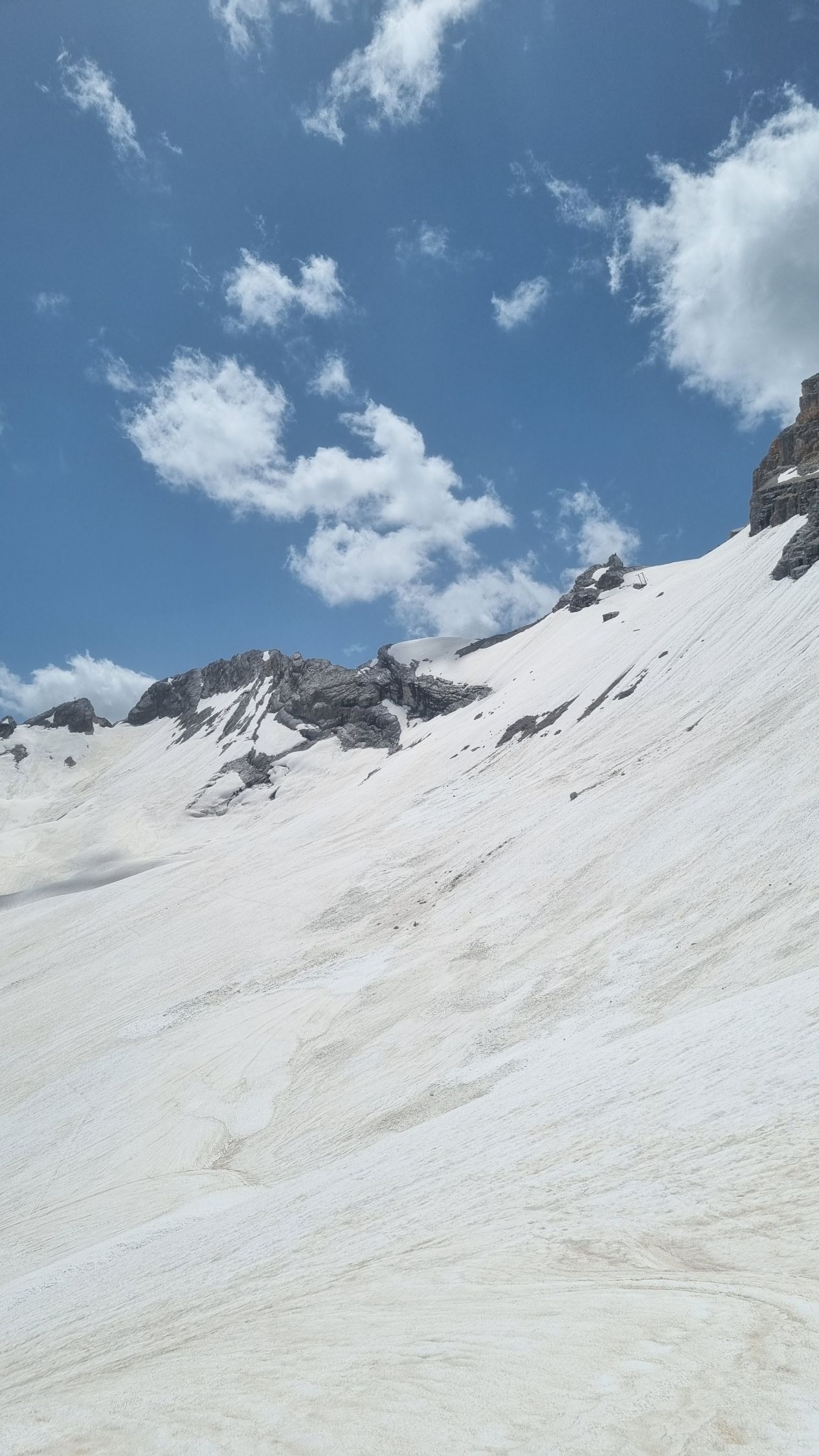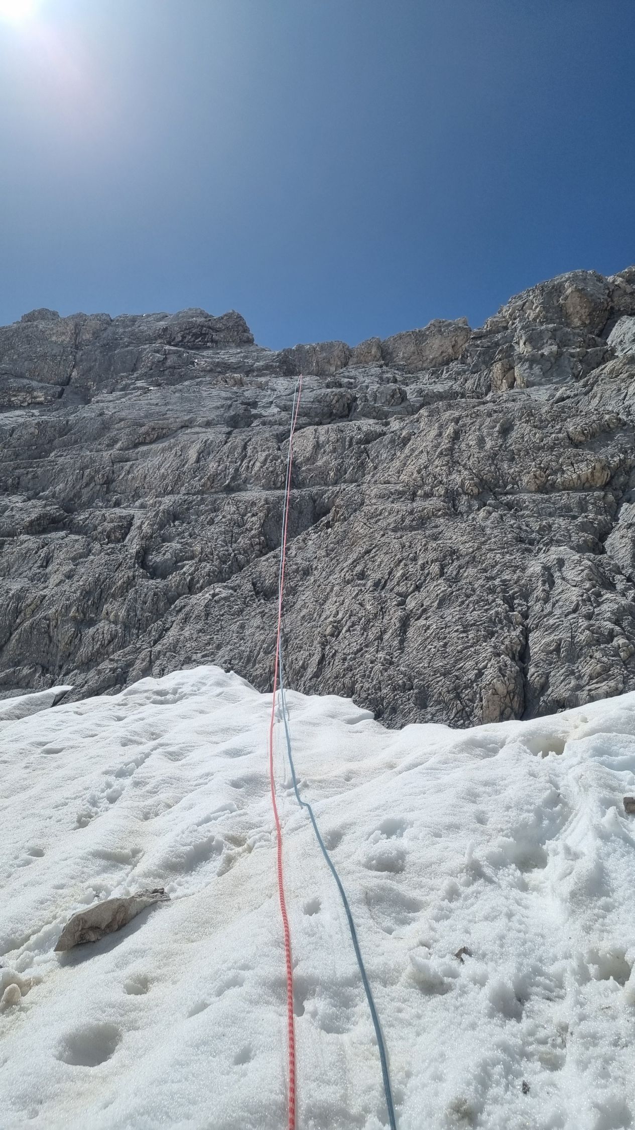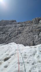 Übergang Fels zu Schnee bach Abseilen ohne nennenswerte Probleme, nur gerige Randkluft.