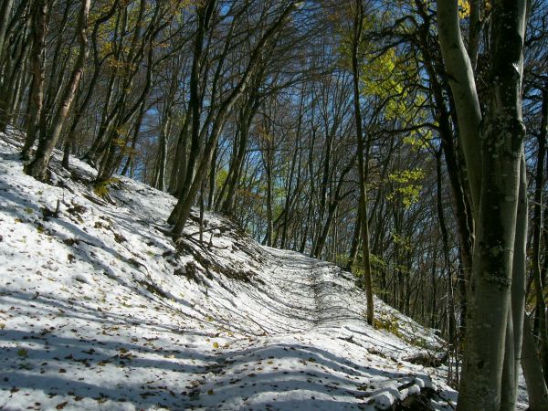 Hügel mit dem Namen Randen gibt's im Kanton Schaffhausen einige, ein besonders markanter ist der Lang Randen. Noch unter dem Nebel begann die Wanderung auf der Siblingerhöhe. Zum Räckholterenbuck ging's dann steil im Zickzack nach oben wo ich auf zirka 700m dem Nebel entfloh und in die Sonne kam. Danach gings nur noch wenig ansteigend zum höchsten Punkt - dieser liegt aber langweilig im Wald ohne Aussicht, aber mit dem Schnee und den Herbstfarben war's trotzdem schön. Über das Randenhus und den Siblinger Randenturm (tolle Aussicht aufs Nebelmeer!) gings anschliessend hinunter nach Siblingen.
