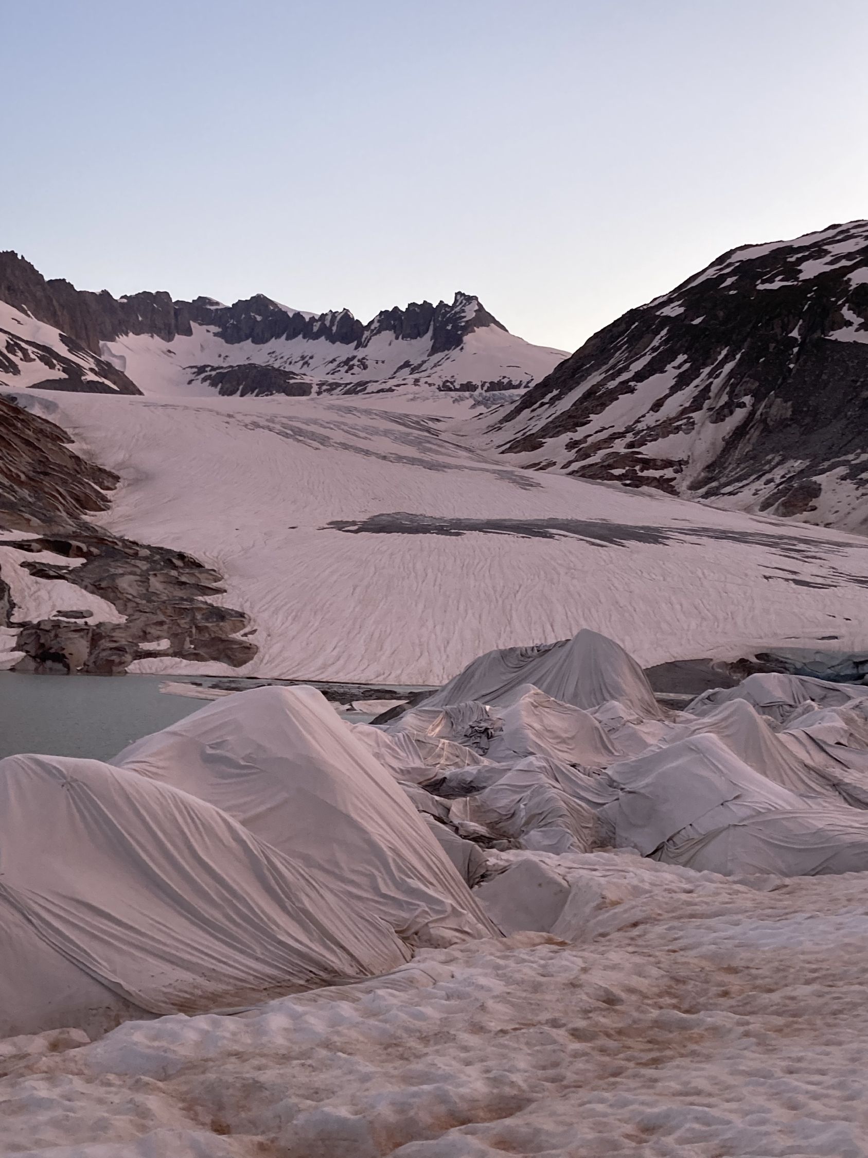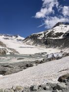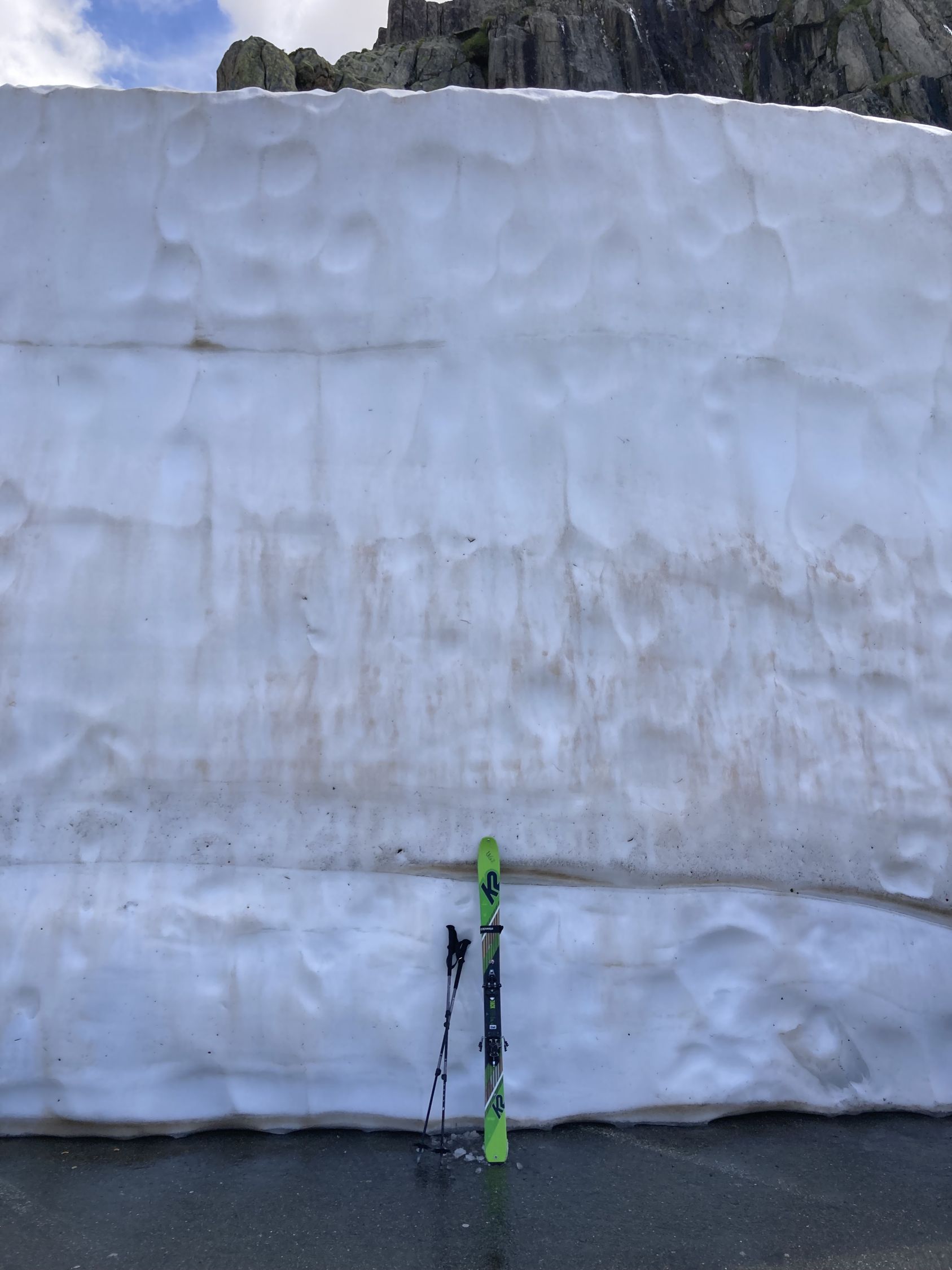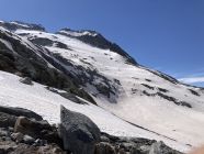 Noch gute Bedingungen. Rechts der alten und neuen Eisgrotten hat es einen Schneestreifen bis ca.2500, danach sehr viel Schnee auf dem Gletscher.
