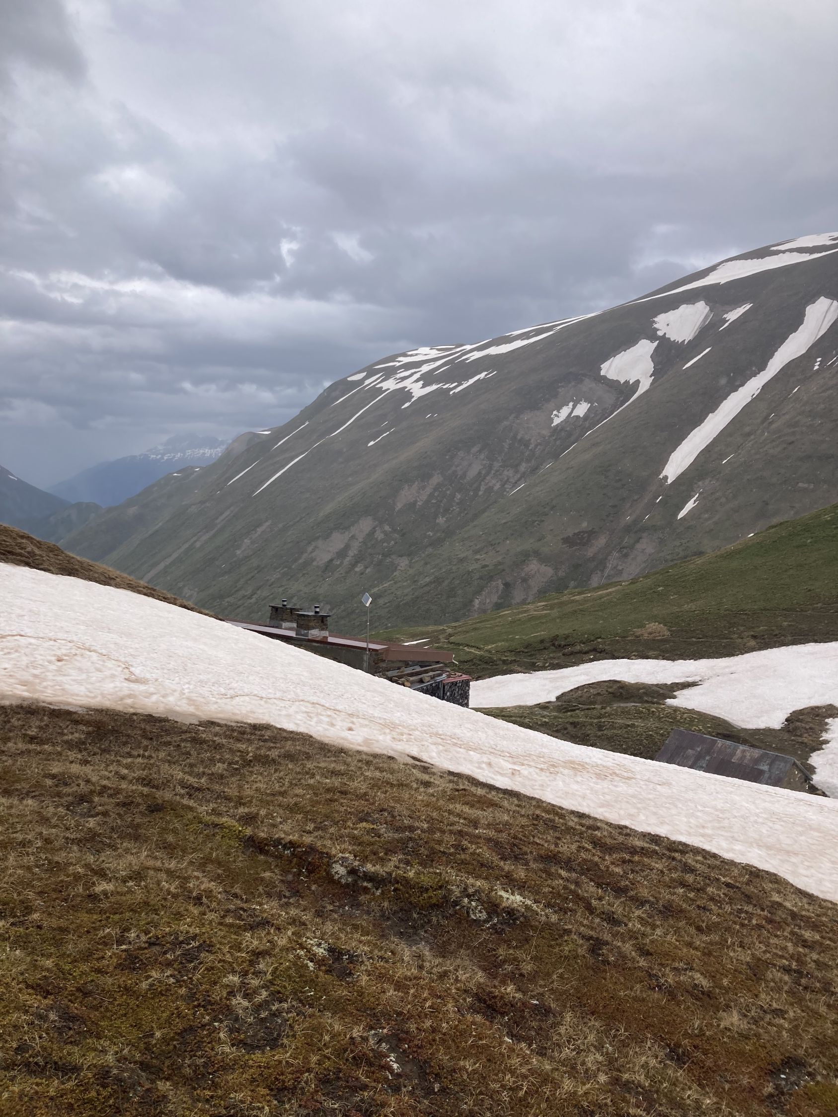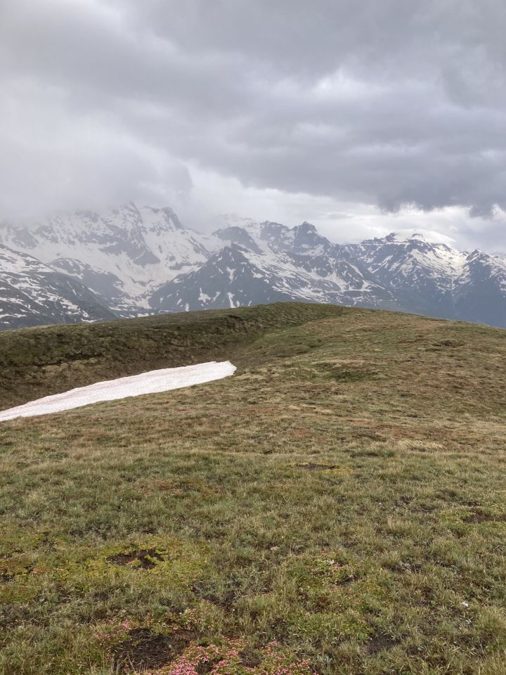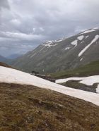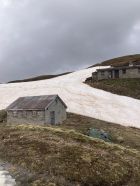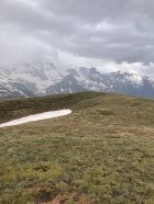 Schneefelder bedeckten einen Grossteil des Weges, sodass man daneben gehen musste. Rutschgefahr!