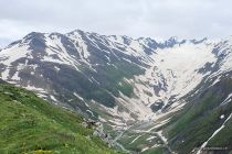 Auf der Militärstrasse ab dem Pass fehlt der Schnee weitgehend und es müssen die Skis fast durchgehend bis zum P 2495 getragen werden.