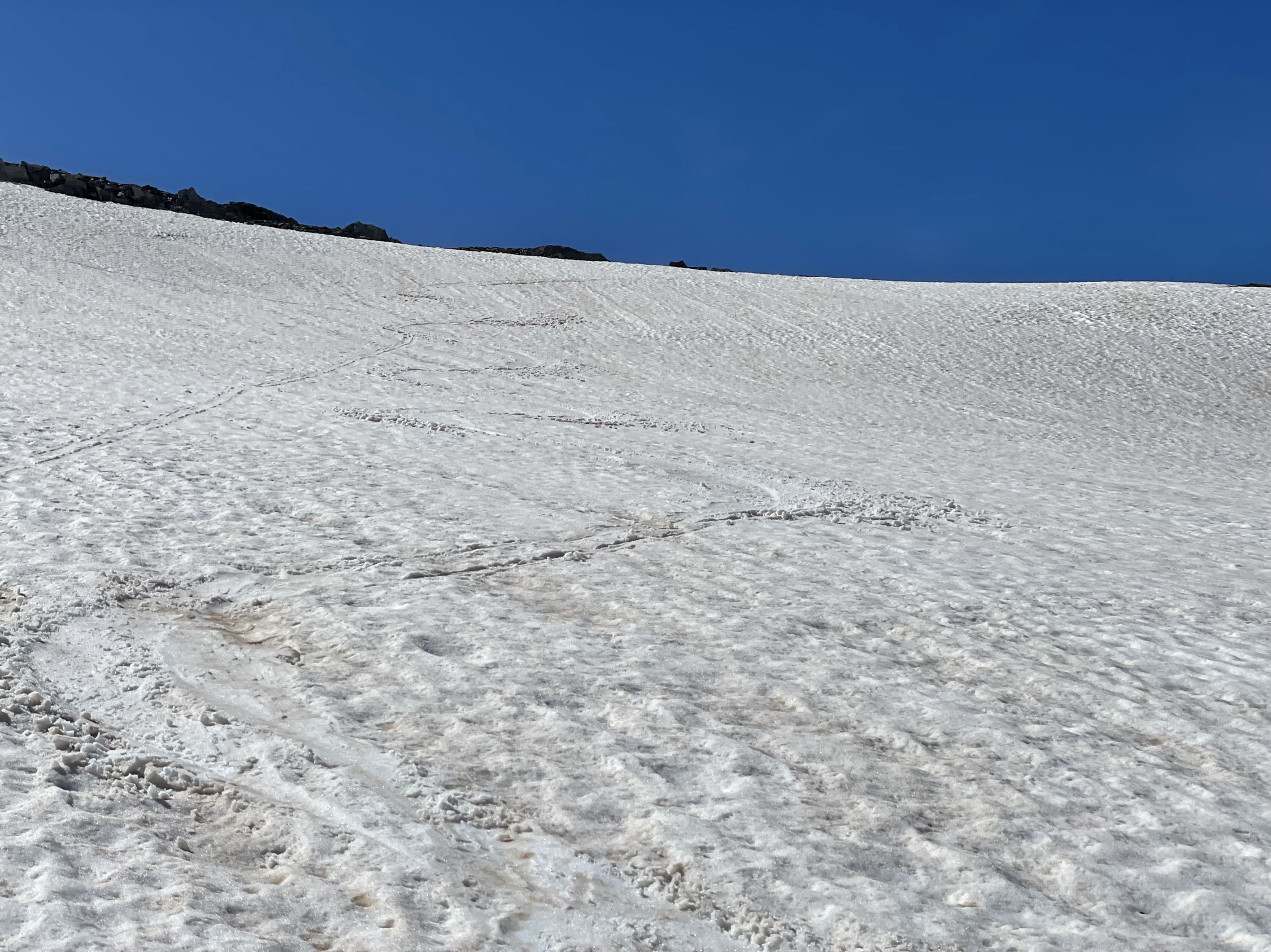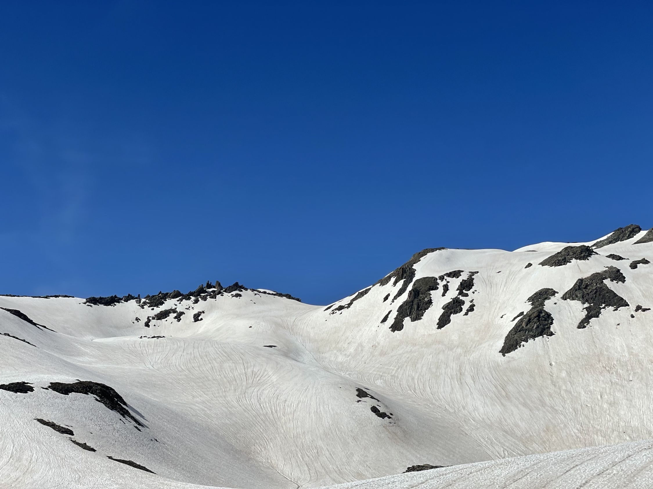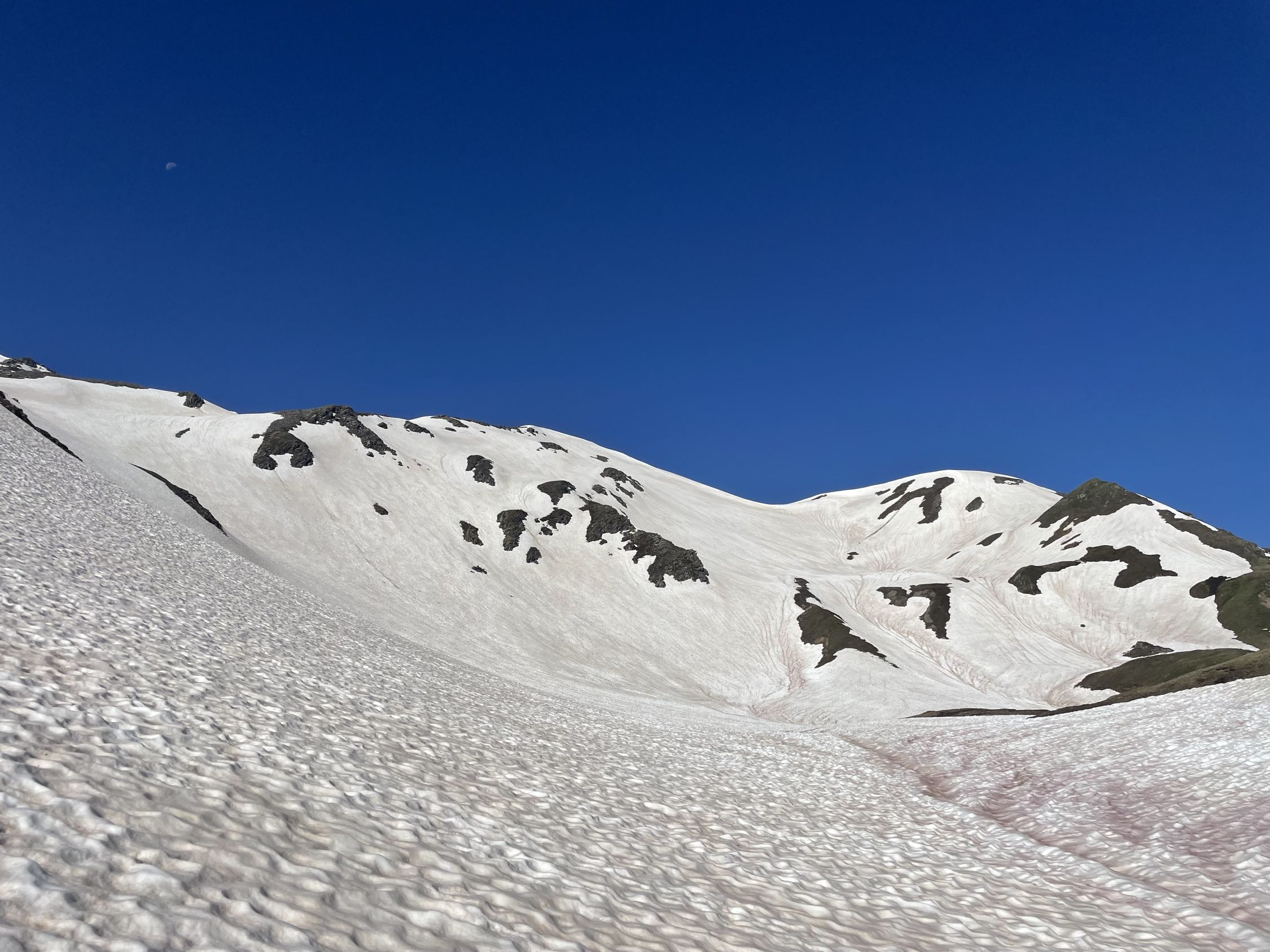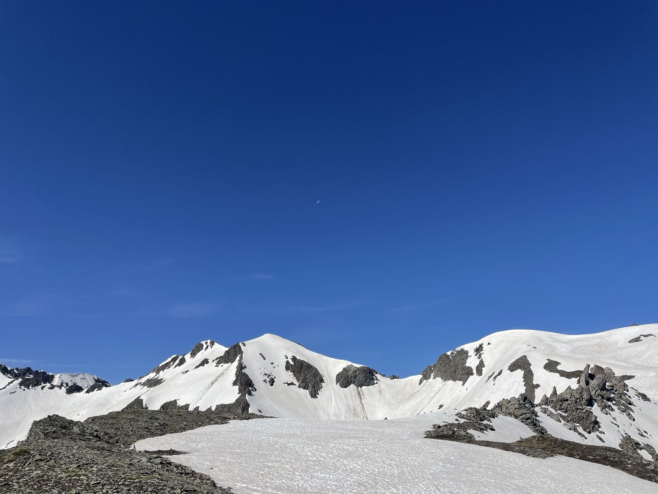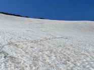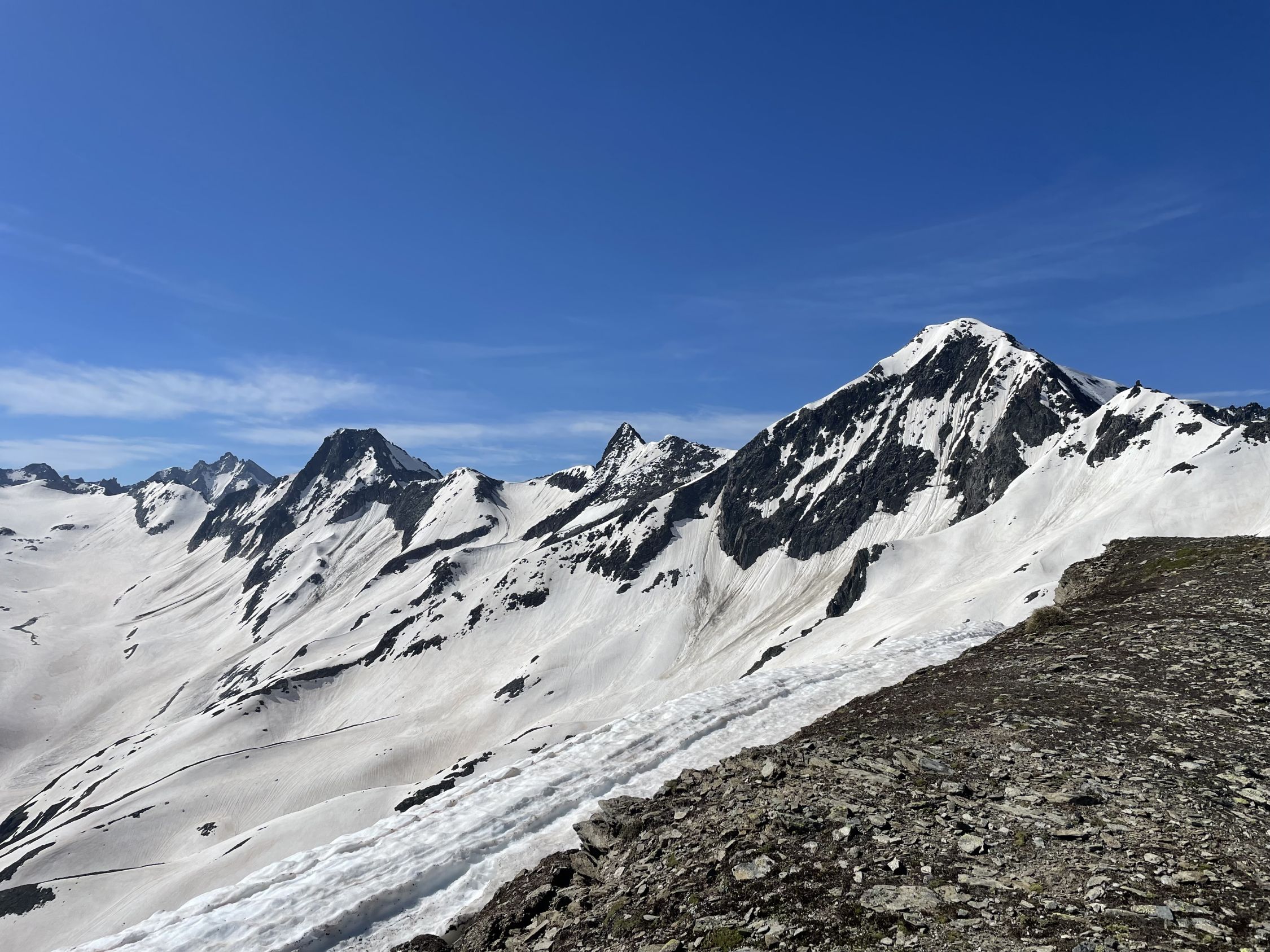 Der Frühling ist auch auf den höchsten Pässen mit Macht angekommen. Das hier geht sicher noch ein paar Tage. Blick in die Runde: Klein Furkahorn ab Pass wurde gemacht und Gross Muttenhorn sicher auch, dem PP nach.