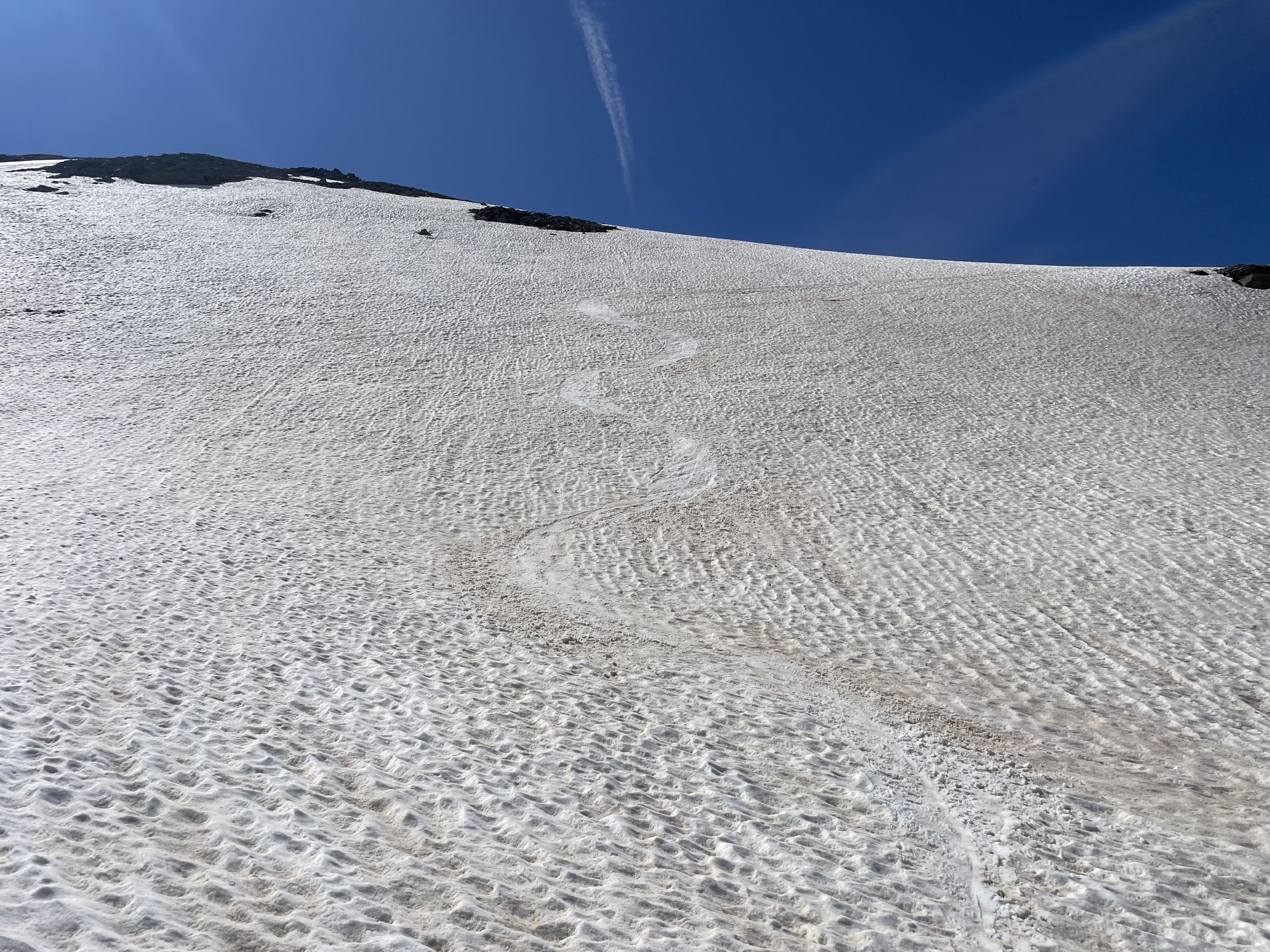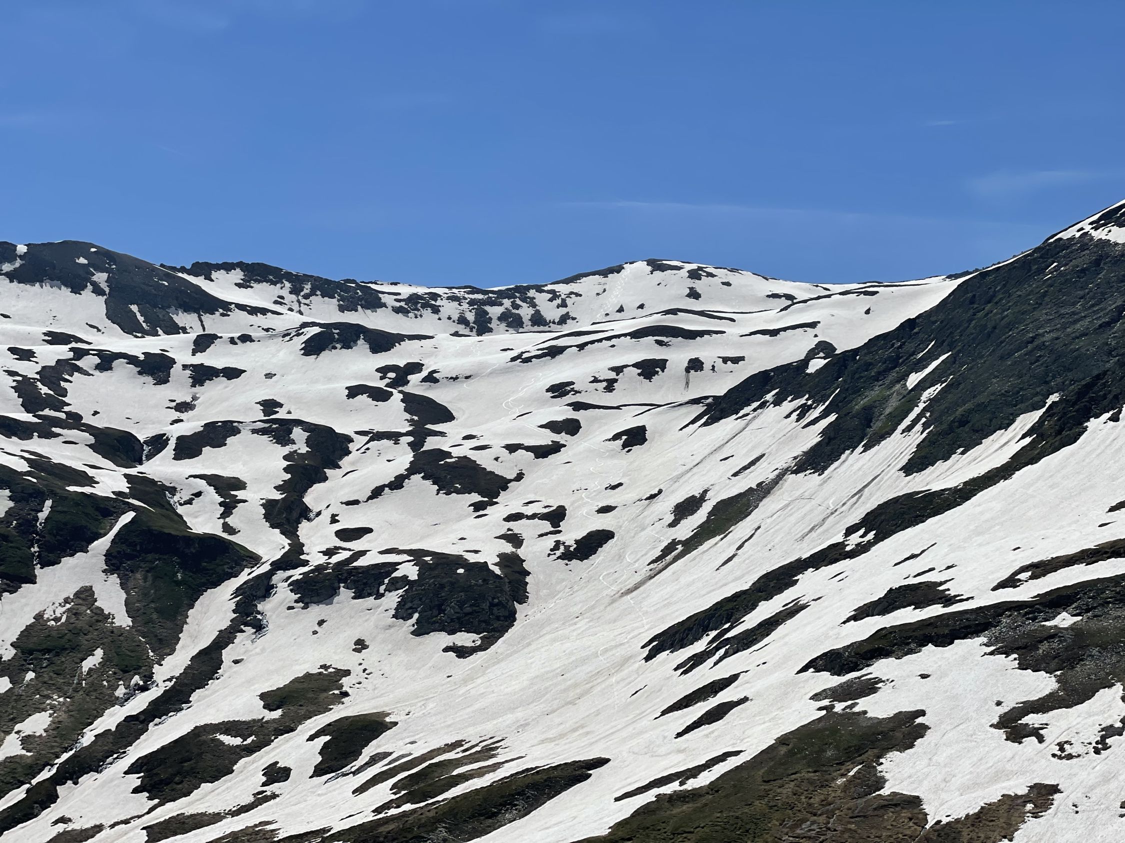 Start zu dieser für mich neuen Tour heute kurz vor 08.00 am Pass. Ziel waren nicht direkt die Stotzigen Firsten, sondern ein Punkt zwischen diesen und dem Griegufergrat. Schnee in der unteren Hälfte komplett durchnässt und das war in der Traverse und auch im Aufstieg bis etwa 2600 unangenehm, da man (ich) ständig abrutschte. In einem etwas steileren Stück habe ich die Ski daher kurz getragen. Ab dem Seeli auf 2600 tragend und guter Sulz - für Firn war es zu warm. Oben sehr schöne Einblicke ins Rotondo und zu den Muttenhörnern. Landschaftlich sowieso eine dankbare Tour. Abfahrt dann oben nahezu top und auch unten viel besser als gedacht. Danach wieder die Traverse zum Pass mit kurzen Tragestrecken.