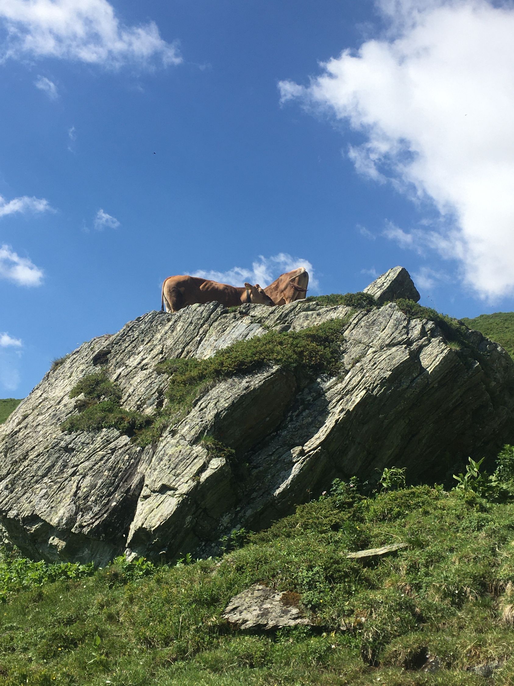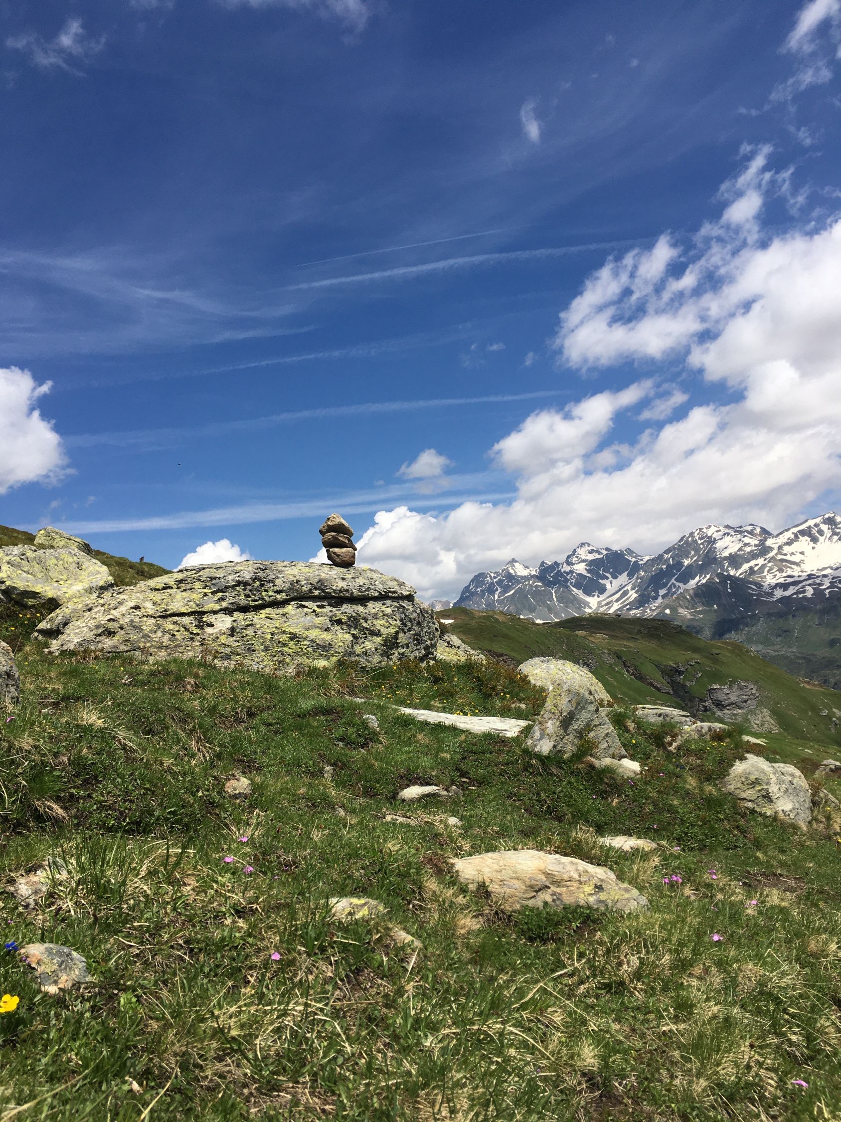 Sommerwanderung auf das einsame Hochplateau oberhalb Bivio, T3. Start Bivio 9.15 Uhr, 15 Grad, windstill. Schöner gut markierter Bergwanderweg zwischen zahlreichen Kühen hindurch auf das grosse Hochebene oberhalb Bivio. Tolle Rundsicht. Abstieg wie Aufstieg.