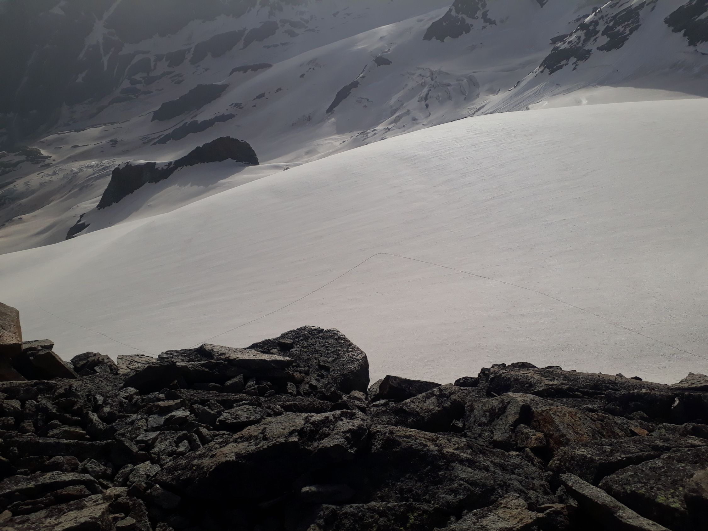 Start um 6 Uhr bei der Chamanna Coaz. Auf dem Weg zum Gletscher hat es zwei kurze Passagen (total ca. 10 min.), die schneefrei, aber gut zu Fuss zu gehen sind. Der Schnee hat sehr gut getragen. Die Felsen ab dem Skidepot bis zum Gipfel sind trocken und wunderbar zum Klettern. Abfahrt im Skidepot um 8 Uhr, hat sehr gut gepasst.