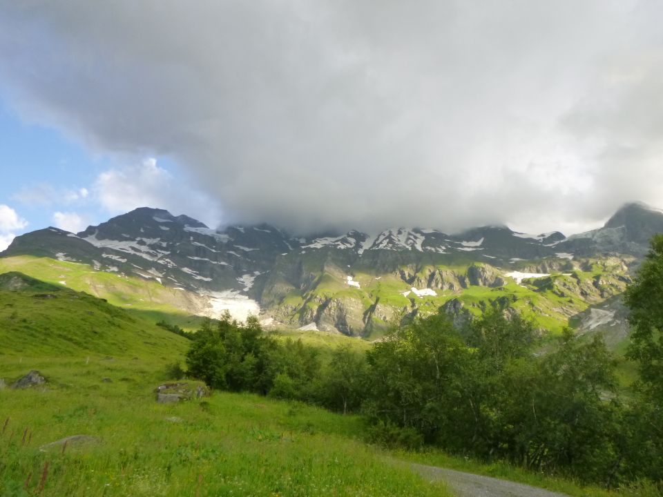 Tourenbeginn um 05:30 Uhr in Ferleiten bei 12°C unter anfangs bedecktem Himmel. Auch tagsüber blieben die Gipfel alle im Nebel. Zwischen Eichhornruh und dem Wasserfall und alten Weg liegen noch Lawinen- und Erdrutschreste, vor denen man im Grashang hochzickzackt zum Wegweiser. Von dort dann weiter auf dem Mainzer Weg zur Hängebrücke, welche von 6 Helfern dort vor wenigen Tagen wieder aufgebaut wurde. Unterhalb der Schwarzenberghütte befindet sich noch ein Schneefeld mit beginnendem Fischmaul. Über dieses ist ein blaues Textilseil zur Benutzung dieser Traverse gespannt.