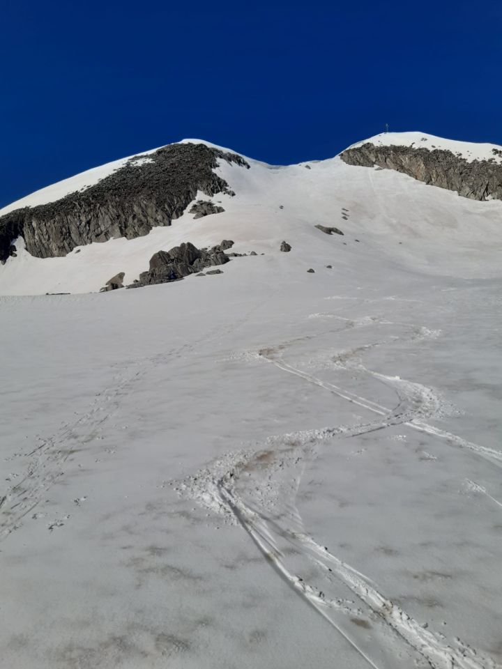Um 5:45 Uhr von San Carlo aus gestartet, Regen und dichter Nebel (3°C). Mit dem E-Bike hinauf zur Alp Lucendro, wo der Schnee beginnt. Trotz leichtem nächtlichem Gefrieren hat der Schnee gut gehalten. Ab 2400 m fielen in der Nacht ein paar cm Neuschnee. Aufstieg zum Gipfel ohne Steigeisen. Vorsicht vor einigen grossen Löchern zwischen dem Schneegrat und dem felsigen Teil.