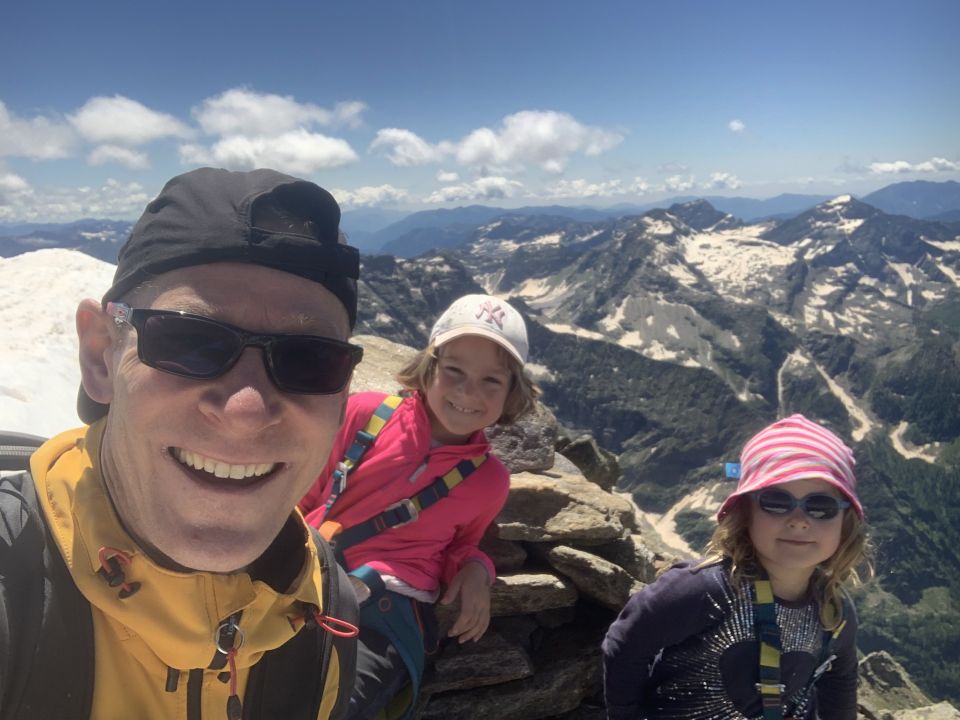 Es liegt noch sehr viel Schnee für die Jahreszeit. Das erste Schneefeld beginnt bereits 200 m von der Hütte entfernt. Die Gratpassagen sind meist aper, dazwischen hat es aber teils ausgedehnte Schneefelder. Später Start um 8:30 h, die Sonne hatte bereits gewirkt und der Schnee war griffig („tief“ wurde er im Tagesverlauf dennoch nicht). Praktisch windstill, angenehme Temperaturen. Insbesondere der finale NNW-Grat ab Bocchetta die Croslina glänzte mit warmen, trockenen Fels. Mit meinen beiden beinahe 7-jährigen Mädels in 8 h Hütte-Gipfel-Hütte. Pickel aktuell durchaus sinnvoll. Die Nortec Microspikes waren v.a. sinnvoll, da ich die beiden Mädels oft am Seil sicherte. Die selbstgebauten Schneeketten für die Kinderschuhe waren insbesondere im Aufstieg eine grosse Hilfe.