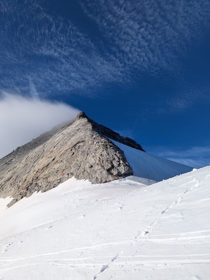Gute Verhältnisse, ein bisschen Schnee/Eis im Nordgrat, im Abstieg vom Riepengrat noch mehr Schnee