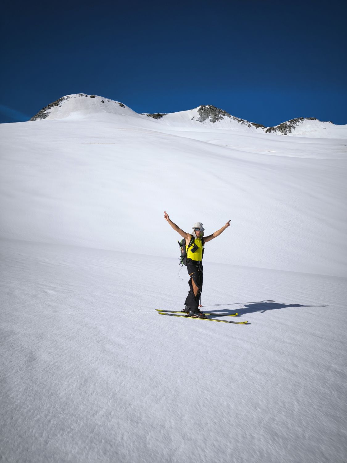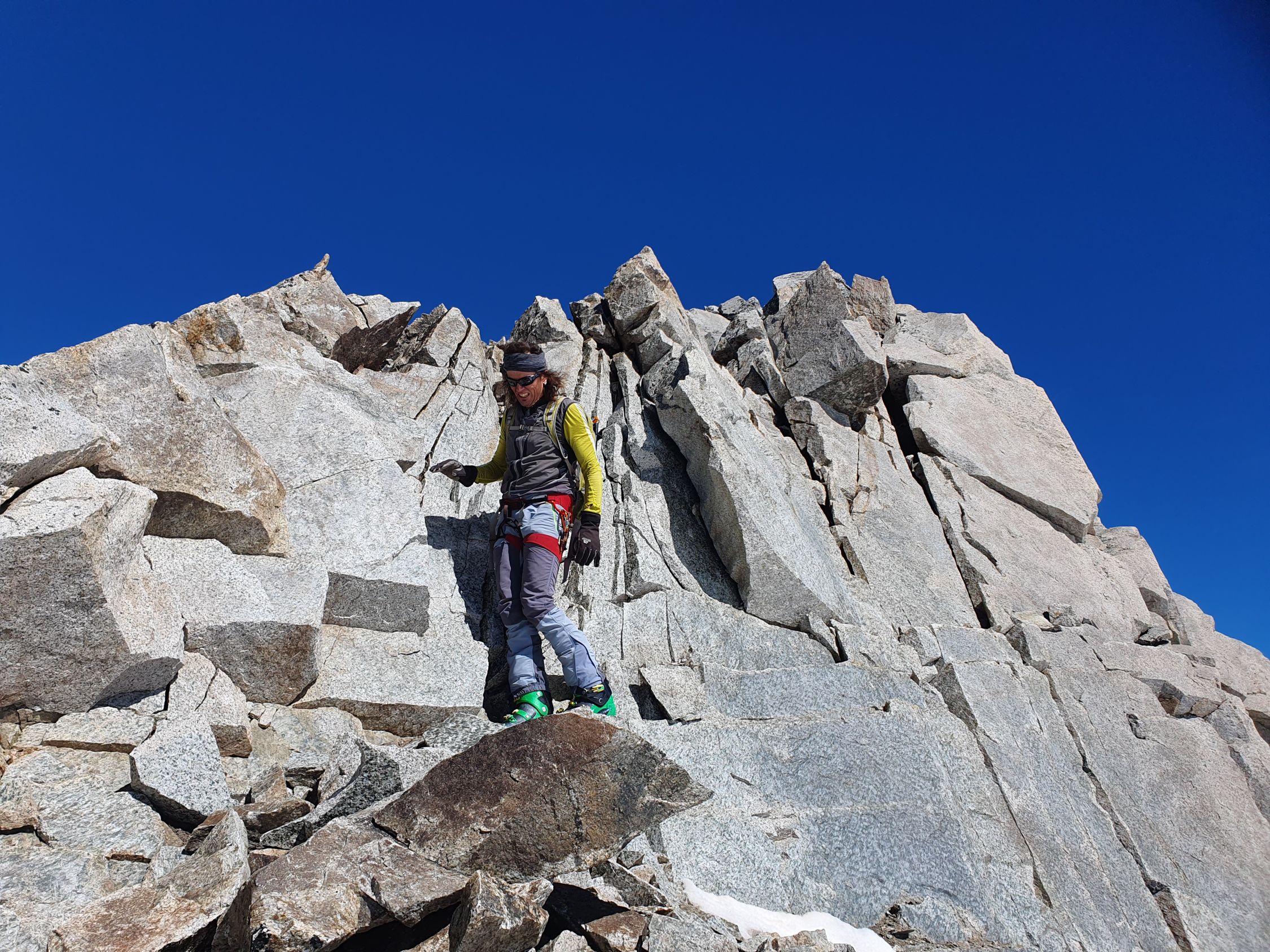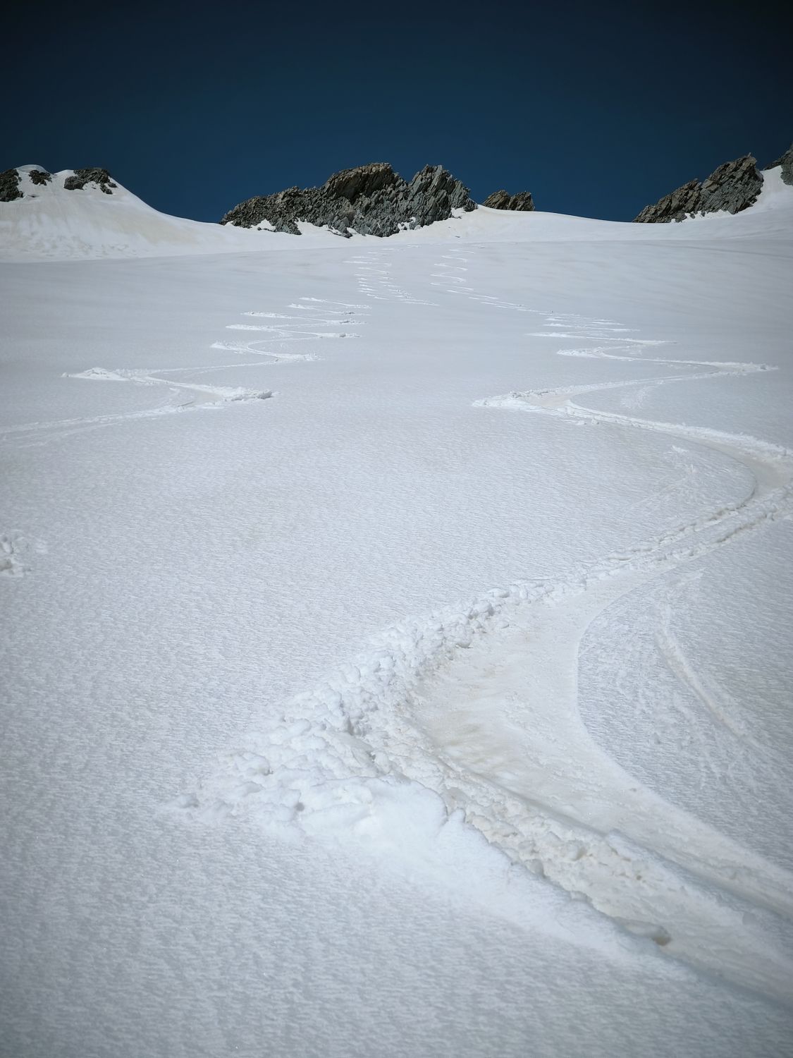Start um 5:30. Wir sind orografisch den ersten Teil des Gletschers rechts hoch. Somit konnte man die Ski nach 10min anschnallen. In der Nacht hat es mal ausnahmsweise gut abgestrahlt im Vergleich zu den letzten Wochen. Von der Undri Limi ganz kurze Abfahrt, um dann links am Hang entlang zum südlichen Wandfuss des Diechterhorns zu gelangen. Da dort das Englische Militär übte sind wir vorher noch zu Pkt. 3318m traversiert und machten dort unsere Pause. Anschließend zum Diechterhorn zurück, der dann verwaist war. Skidepot direkt unter den Felsen mit anschließender anregender und konzentrierter Kraxelei auf den Hauptgipfel. Nach der tollen Abfahrt vom Gipfel sind wir noch auf den Limistock, um von dort direkt wieder über den Rhonegletscher nach Belvedere zurück kommen. Teilweise mit Stöckeln. Eine gelungener Skitourentag mit Bergrider.