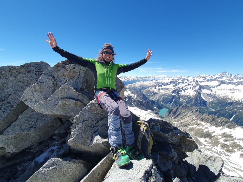 Zuerst, resp. bis die Soldaten hinabgestiegen waren, haben wir den namenlosen P3318 besucht, der v.a. einen guten Einblick zum Gwächtenhoren gewährt. Hierzu kurz über ein paar Felsen unschwierig hinüberbalanciert.