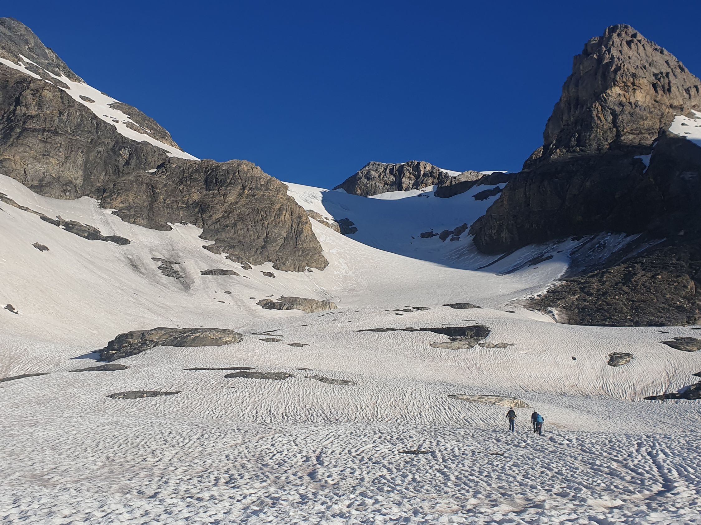 Steigeisen können nach 45min angezogen werden (auf ca. 2550m). Vorher sehr schöner Zustiegsweg ohne Geröll.