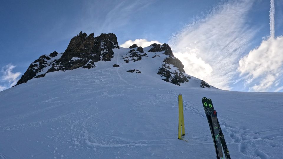 Am Grat ist guter Trittfirn vorhanden. Jedoch gab es 2 kleinere Couloirs mit Kletterstellen in Eis/Fels. Vor allem bei letzerer ist Vorsicht geboten. Dort hat es eine Sicherungsmöglichkeit, sonst sind diese momentan noch nicht sonderlich vorhanden.