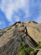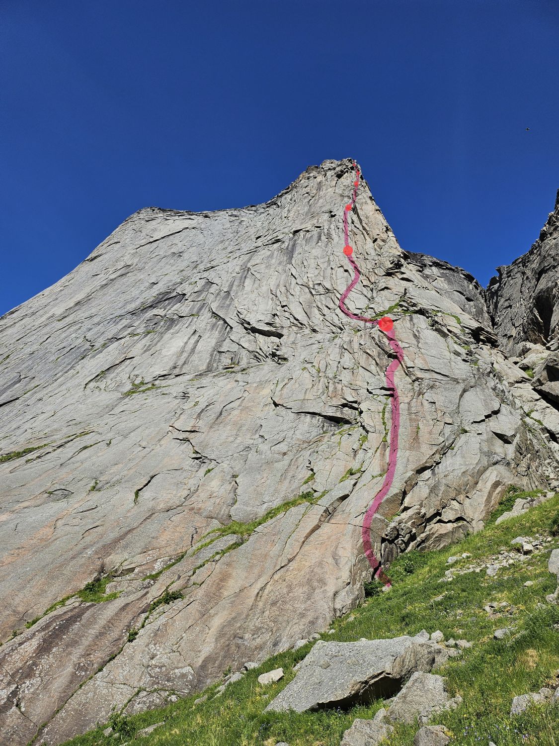 Wer im "wilden Westen der Lofoten" klettert begibt sich defintiv auf ein Abenteuer. Man findet kaum brauchbare Informationen zu den Touren. Das Topo im Rockfaxführer nützt auch nur wenig, da man so viele ähnliche Strukturen sieht und der Strich auch nicht immer korrekt eingezeichnet ist. Ausserdem muss die eine oder andere Schlüsselstelle zwei bis drei Meter über dem letzten Keil geklettert werden. Wer genau diese Sorte Abenteuer sucht sollte nun sofort diesen Bericht schliessen.