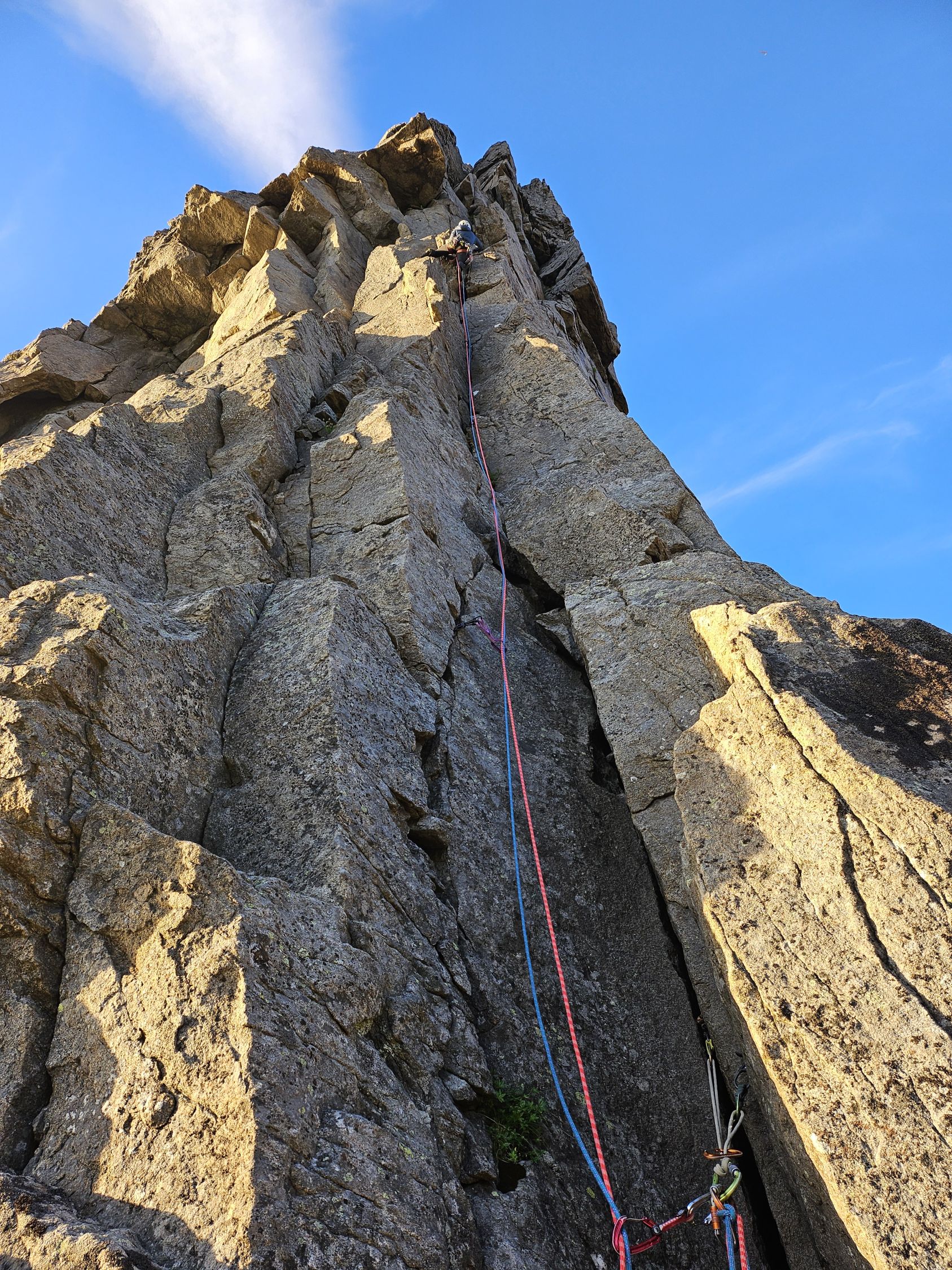 Hier sollte nicht direkt nach dem Regen eingestiegen werden. Die Gipfelplatten benötigen wohl einige Zeit um abzutrocknen. Dort oben möchte man lieber nicht im Saft stehen.