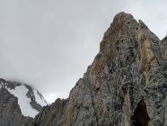 Fels trocken, nur eine kurze Schnee Passage am Ostgrat (Abstieg) und ein Schneefeld im Abstieg zwischen Klettersteigrinne und Biwak.