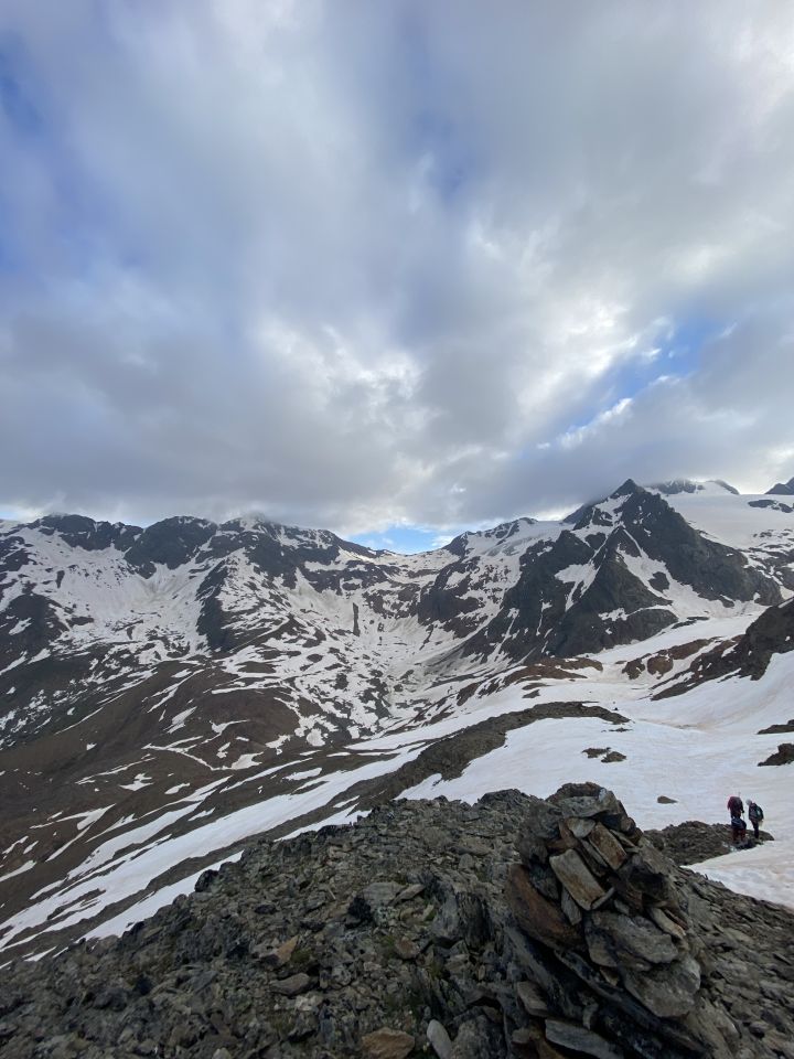 Ab der Hütte prima Verhältnisse. Bis zum Gletscher wenig Schneefelder. Spur gelegt und Wegfindung problemlos. Auch auf dem Gletscher ist eine Spur. Alle Spalten noch zu. Wir sind nur minimal eingesunken. Matscher Wandl mit Trittschnee problemlos. Einzig der letzte Gipfelauffschwung war noch bissel haariger. Wir sind mit Steigeisen den Fels hoch, da dazwischen nochmal Schnee und Eis war (50m vor Gipfel) und hatten dort sogar nochmal gesichert.