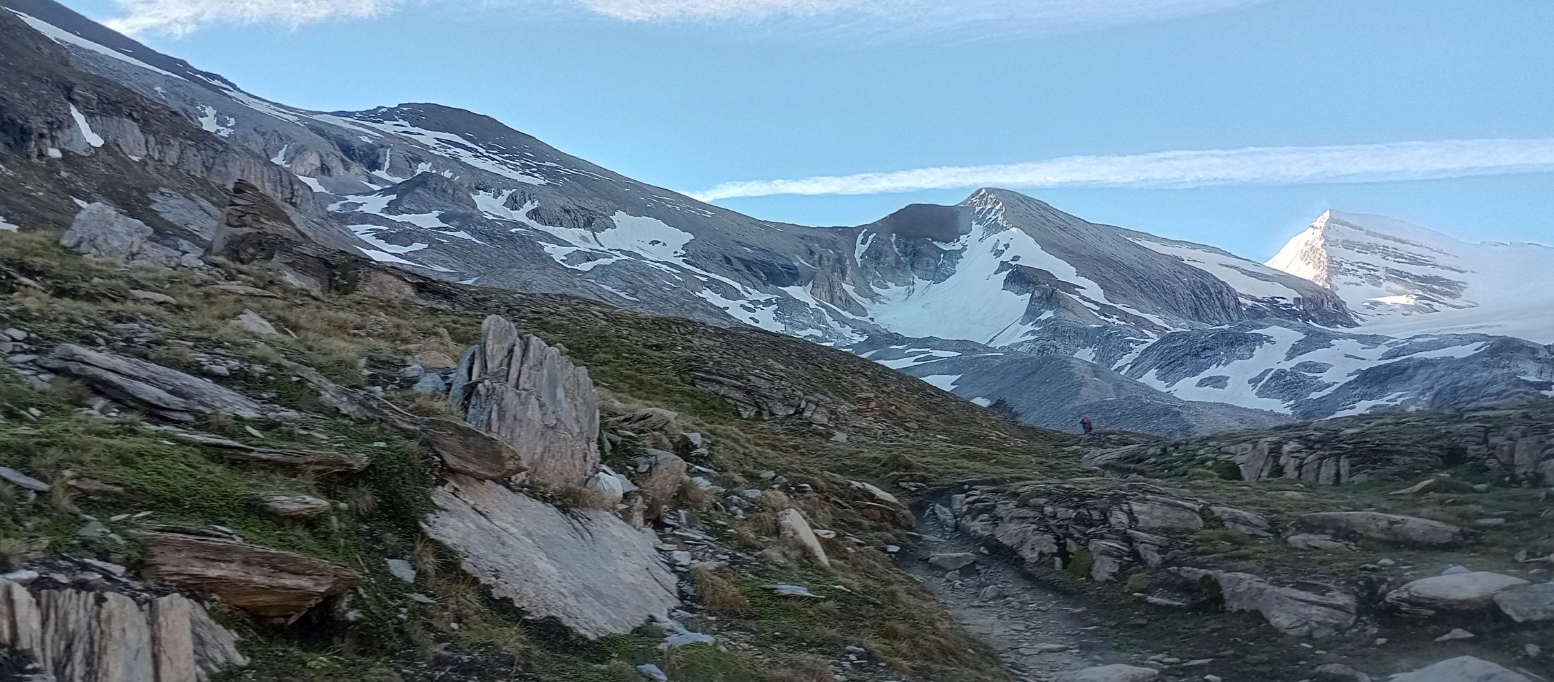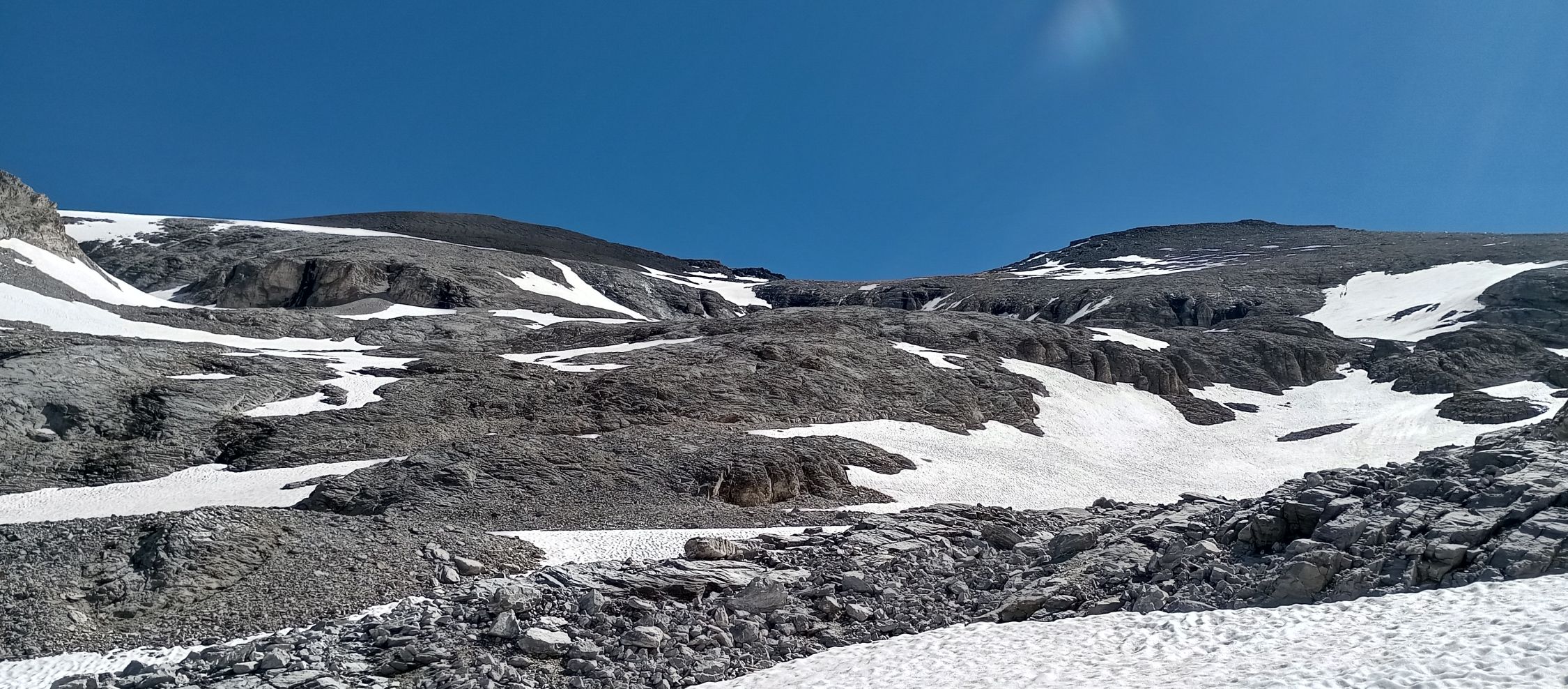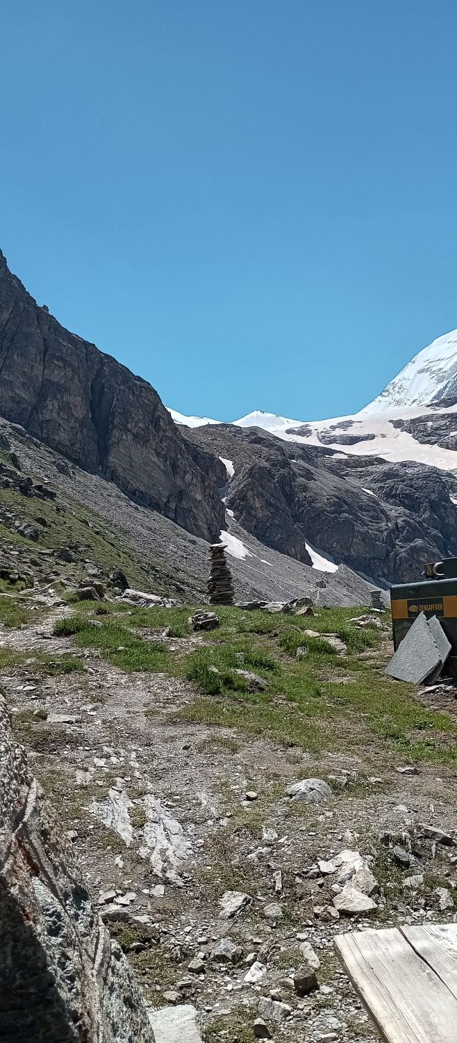 Beim gässi hat es noch harten Schnee, die Stelle wurde aber mit einem Seil erleichtert. Bei ca.3100m ,,quer" nach oben und den Schneefeldern folgen und so kommt man derzeit auf 3500m unterm Gipfel raus. Dadurch spart man sich den mühseligen Normalweg. Ca 45 Grad steil- Steigeisen und Pickel. Abstieg über Normalweg. Dort hat es noch 2 Schneefelder wo man nicht stürzen sollte. Steigeisen nach eigenem Ermessen