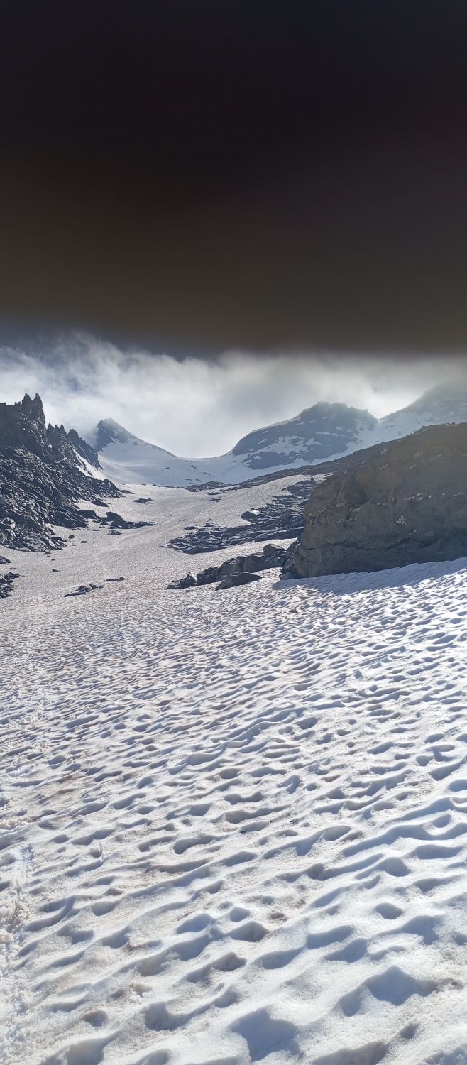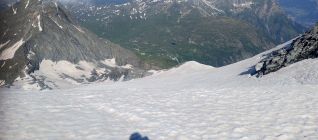 Ab 2500 m Schnee. Am besten immer Schnee folgen bis zum Breithornpass. Bis zum Pass gut gefroren und ab dem Pass reiner Sulz mit einbrechen bis zum Knie. Aufstieg mit Steigeisen und Pickel gut machbar. Randspalte ist noch zu. Anstand zum Grat wegen wechten halten und Abstand zum hübschhorn wegen steinschlag halten. Abstieg geht durch den vielen Schnee schnell. Am besten sehr zeitig starten