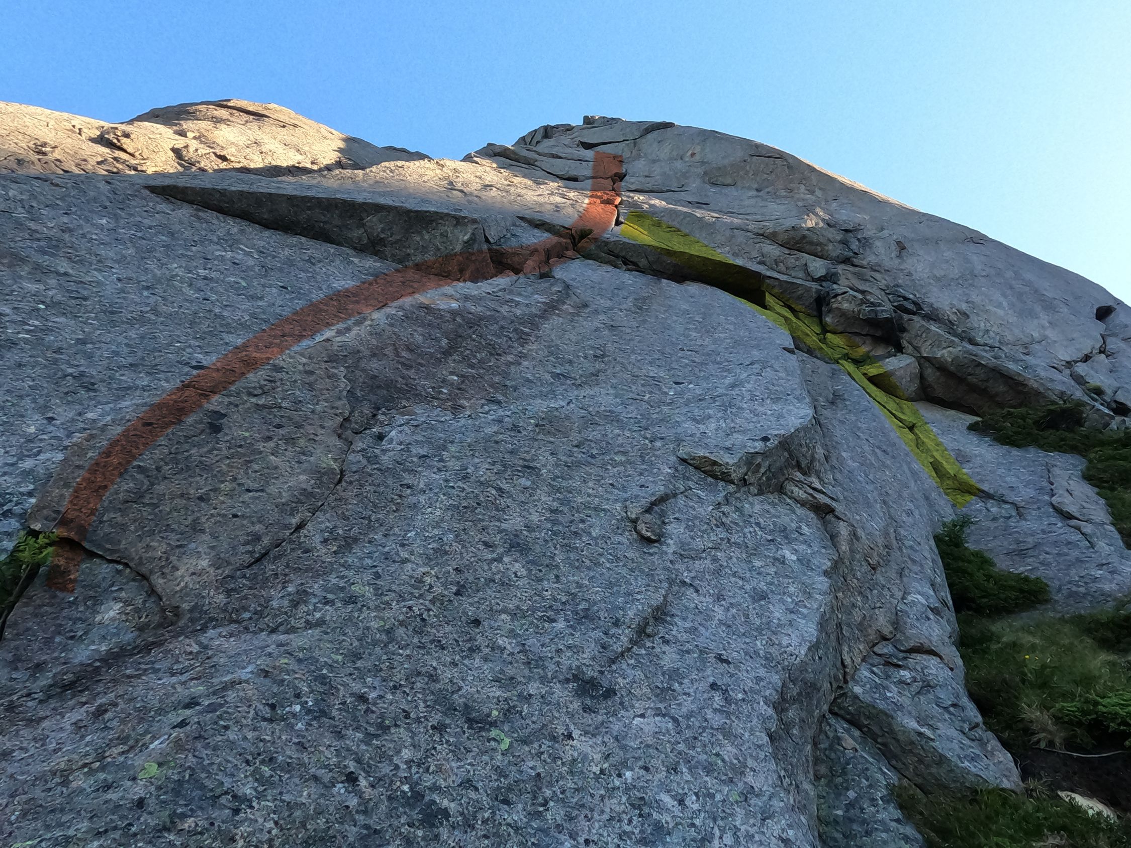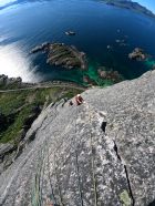 Die Himmelen kan vente ist neben der Vestpillaren direct die einzige 6er Route auf den Presten und bietet mindestens so schöne kletterei. Besonders hervorzuheben ist dabei die tolle Rissseillänge zu Beginn, sowie der wilde Ritt vom Slantingcorner bis auf den Pfeilerkopf.