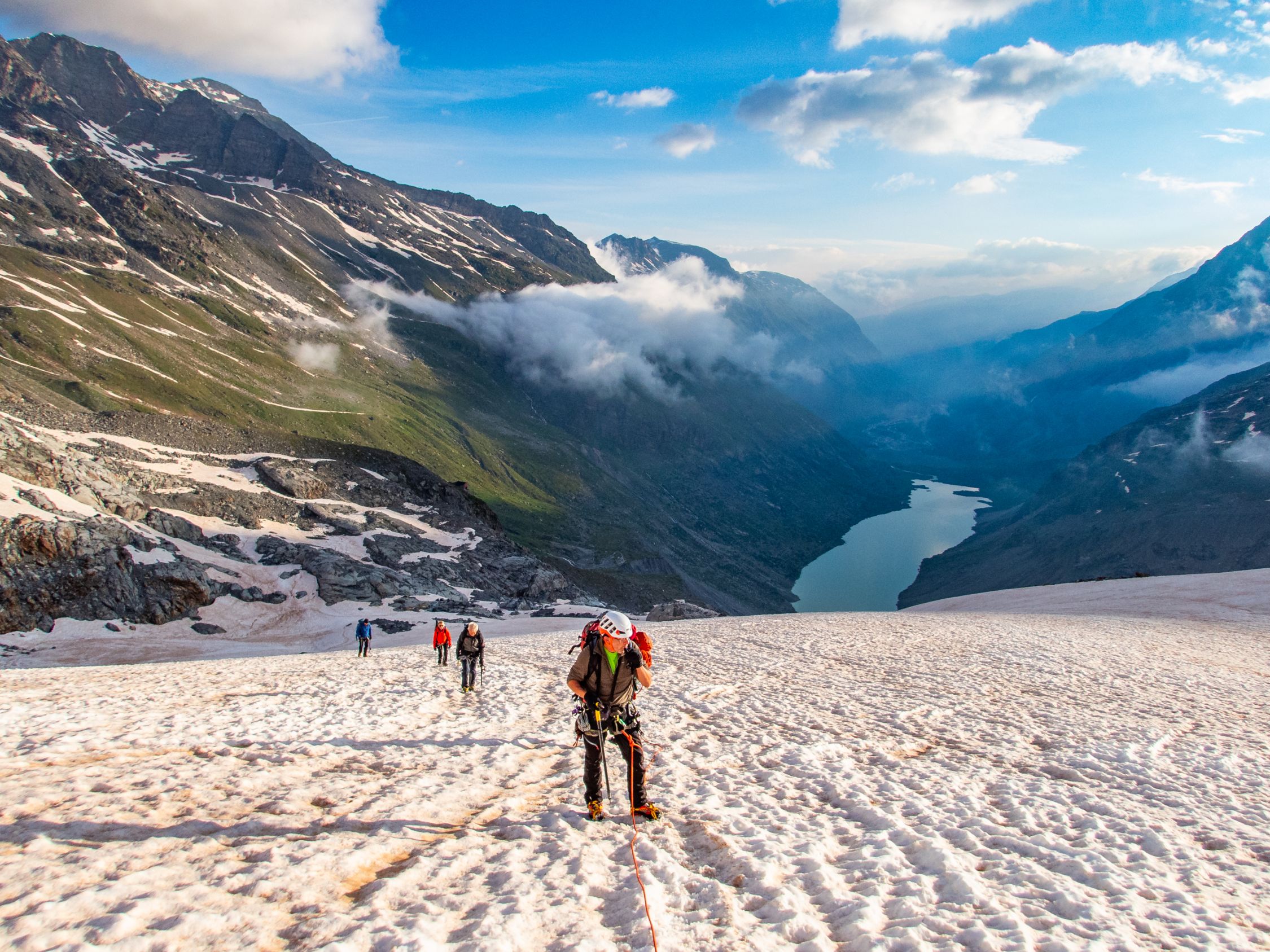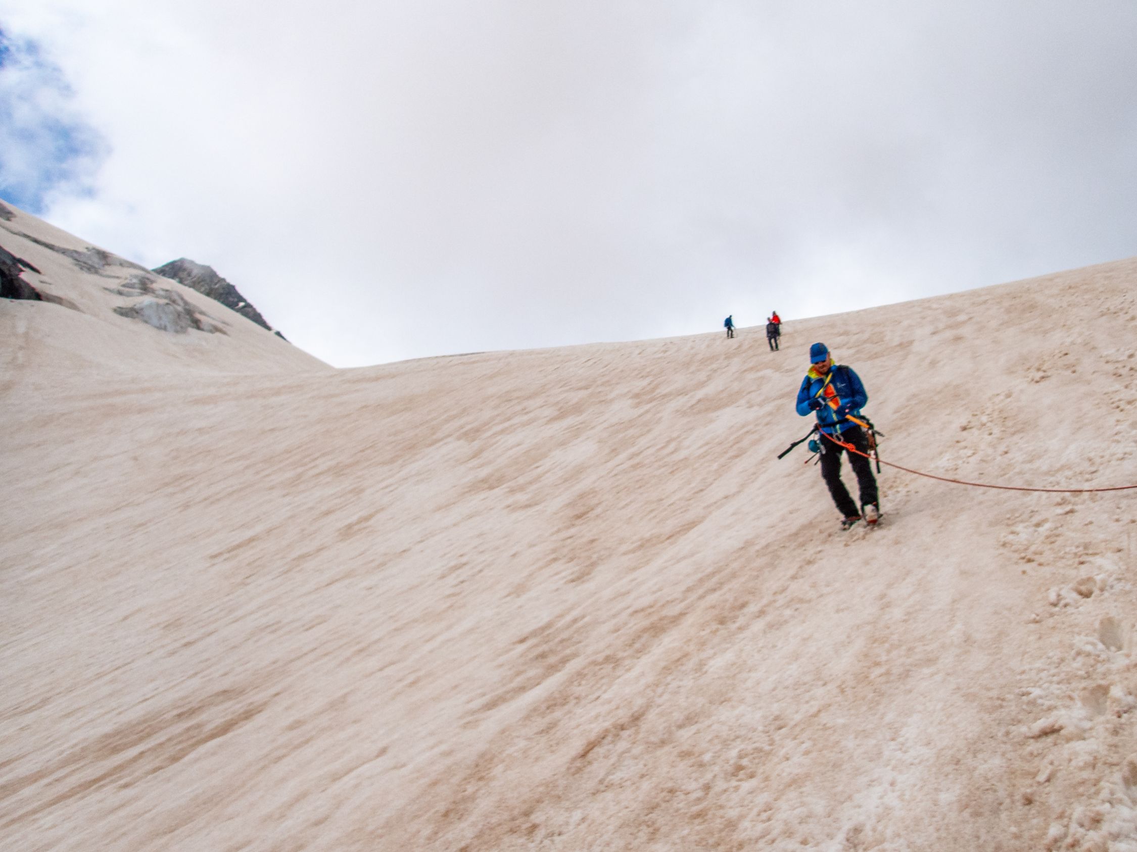 Generell liegt ist im Gegensatz zu den letzten Jahren sehr viel Schnee und Firn auf den Gletschern.