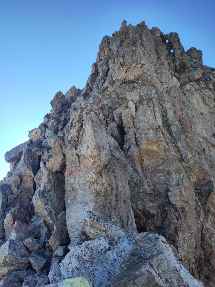 Zum NW Grat: Einstieg über senkrechte ineinander verkeilte Blöcke oder rechts davon im entgegen dem Silbernagel Führer ca 4ten Grad. Der Weiterweg war dann mit ähnlichen losen Blöcken, steil, instabil und äusserst unangenehm. Da der ganze Grat bis auf den Gipfel nicht viel besser aussah, haben wir abgebrochen. Den NW Grat kann ich somit nicht empfehlen, vielleicht wäre es weiter oben besser geworden.