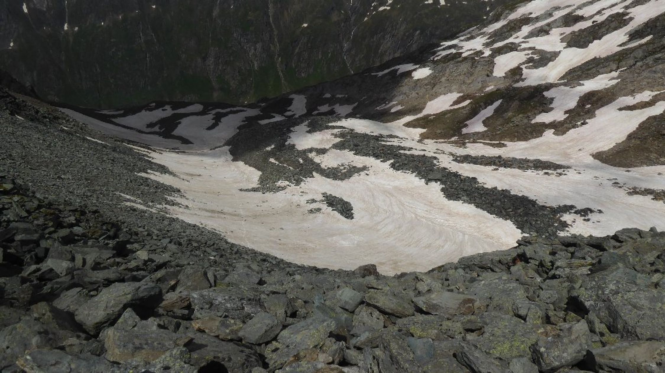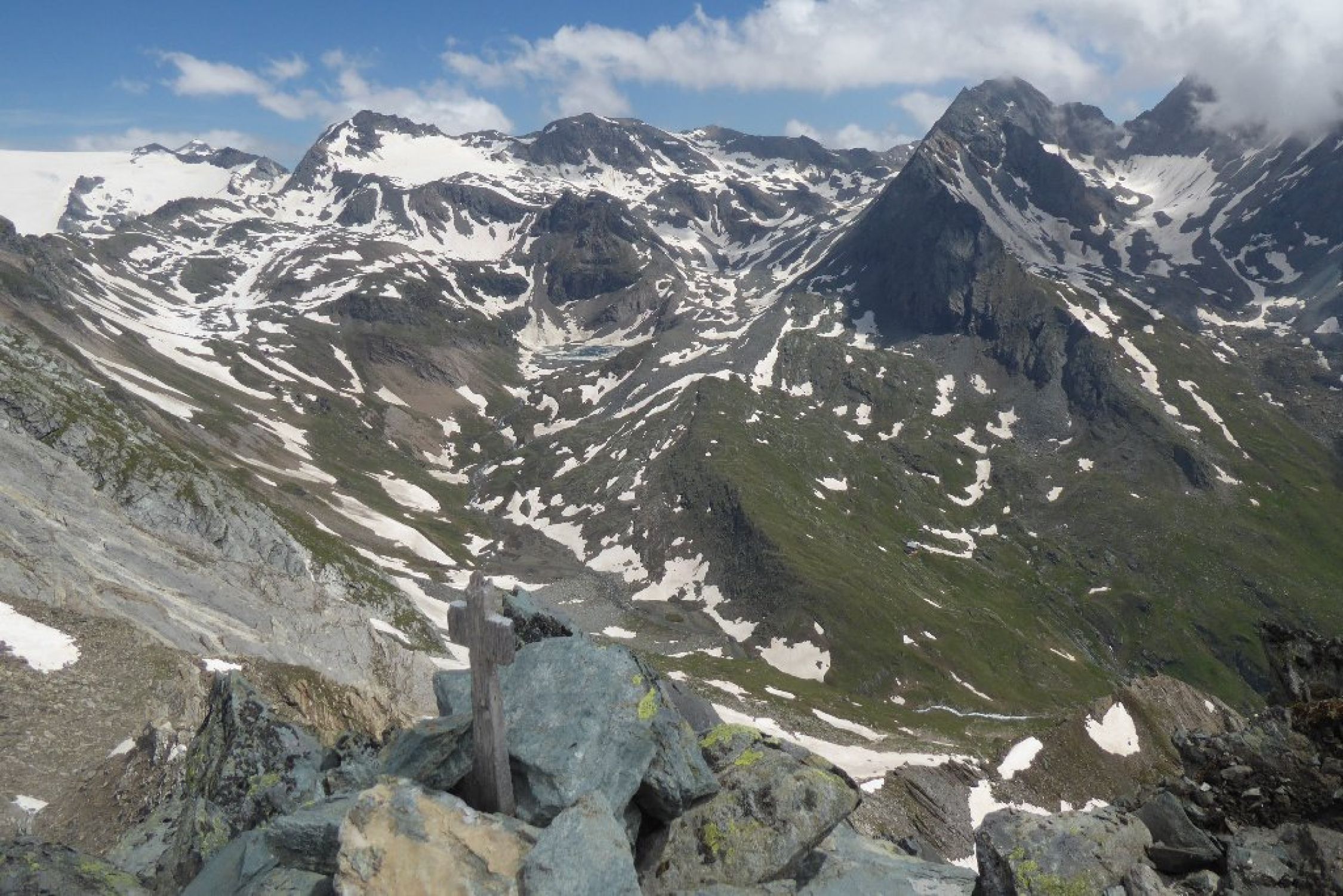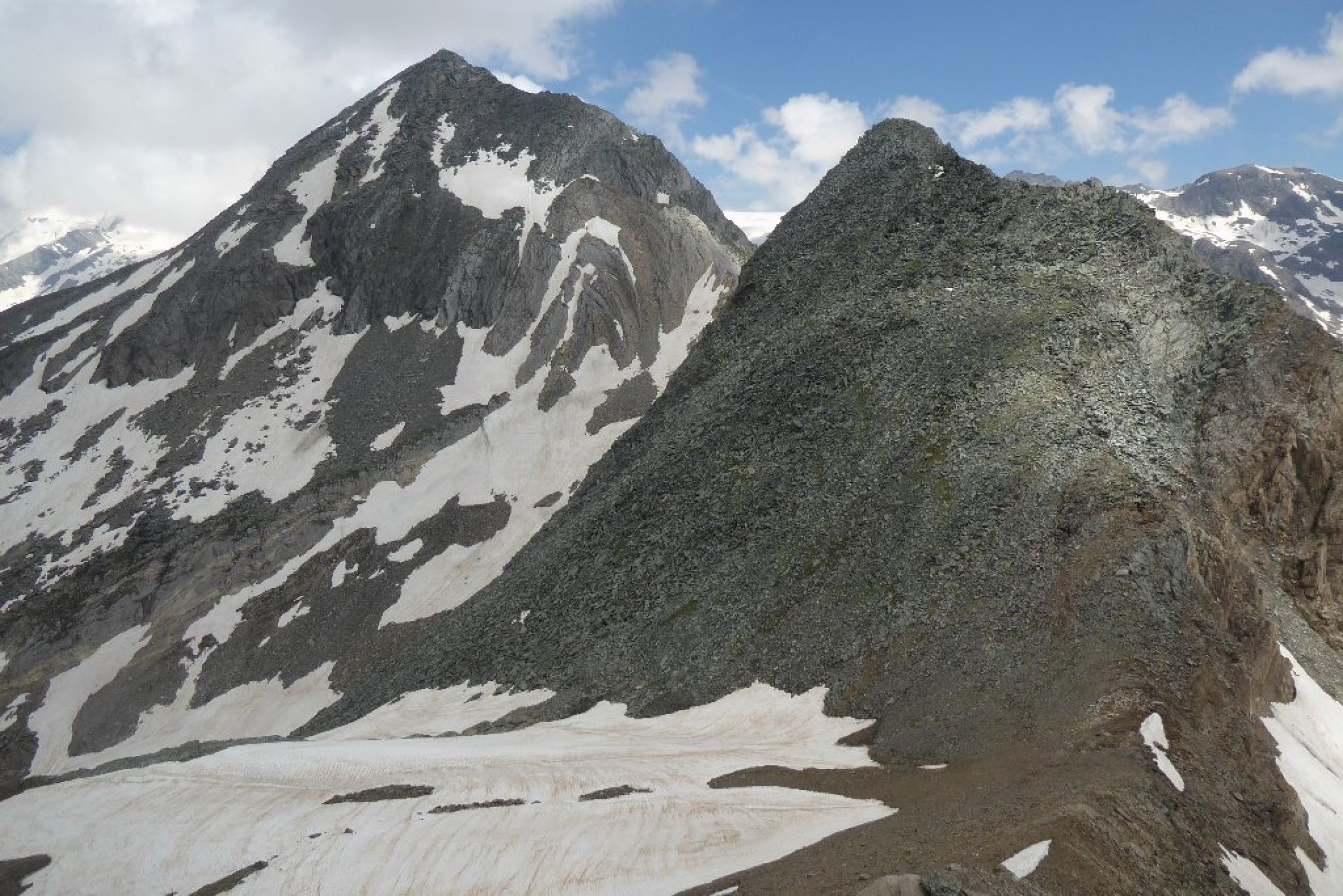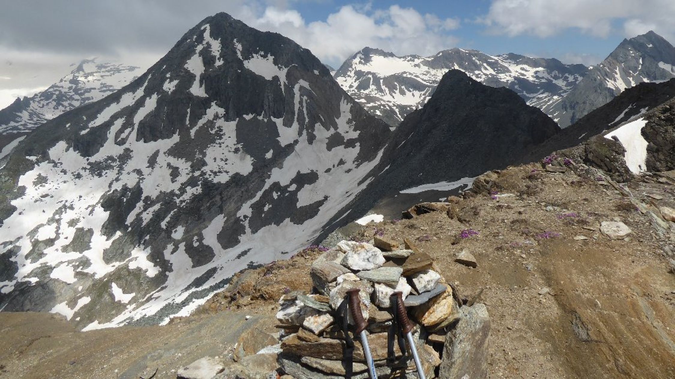 Wetter endlich mal gut ohne Schauer Stress. Allerdings Fernsicht eingeschränkt. Bis Abweig Kreuzspitze beste Bedingungen, ab dort dann Richtung Tuplscharte schon Größere Schneefelder zu begehen alles tragend. Die beiden Gipfelanstiege quasi aper. Im Abstieg ab Schernescharte waren dann doch einige Meter im steilen Gelände zu queren. Hatte Eisen dabei und hier auch eingesetzt. Mit Vorsicht vielleicht auch so gegangen.