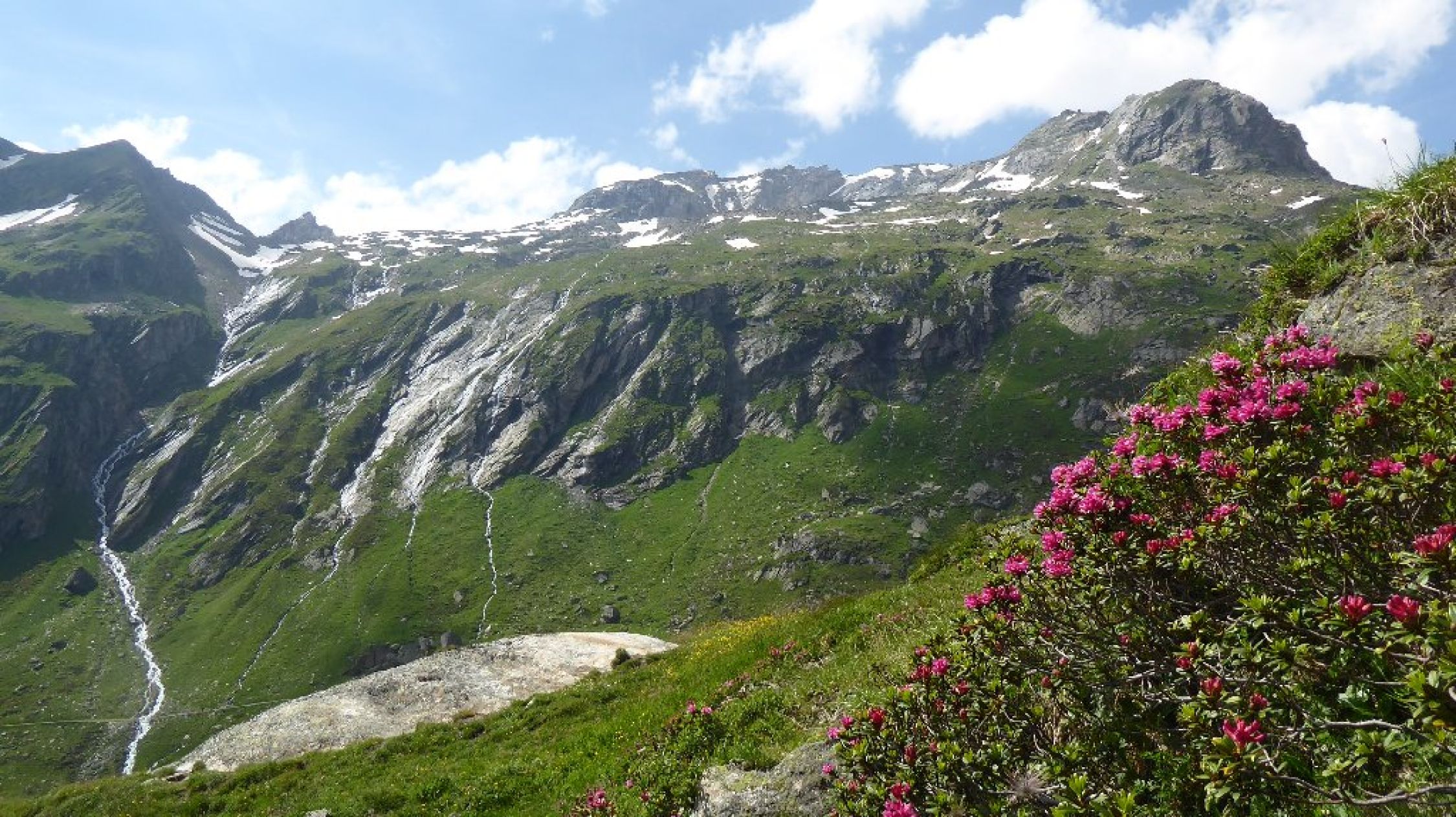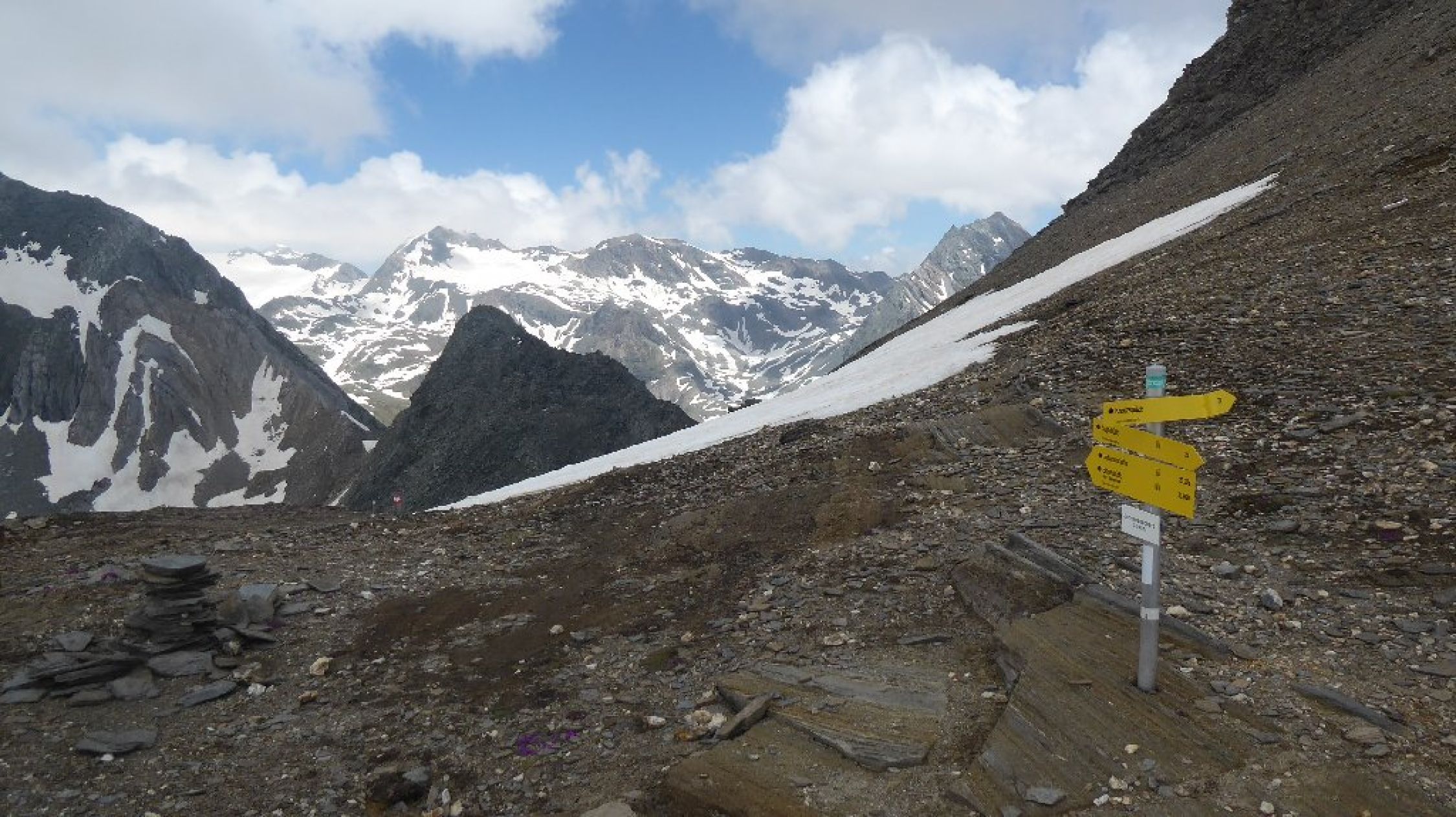 NNO-Grat von Tulpscharte Mit Hüttentaxi zur Johanneshütte Einf.Fahrt 17.-€ Ab P Hinterbichl. Nun auf Venediger HW Richtung Zopatscharte. Am Abzweig auf ca. 2700m auf Weg 23 in die Tulpscharte 2948m. Nun über S.Flanke zur Tulspitz 3054m und zurück in Scharte. Nun über den NO-Grat zur Kreuzspitz hoch. Über W-Grat zum Scherneskopf runter 3043m und etwa zurück in Schernesscharte und durch die N-Flanke der Kreuzspitz auf Weg 23(a) zurück zum Venediger HW und Johanneshütte. Von dort ohne Taxi durchs Dorfertal ins Tal zum P.