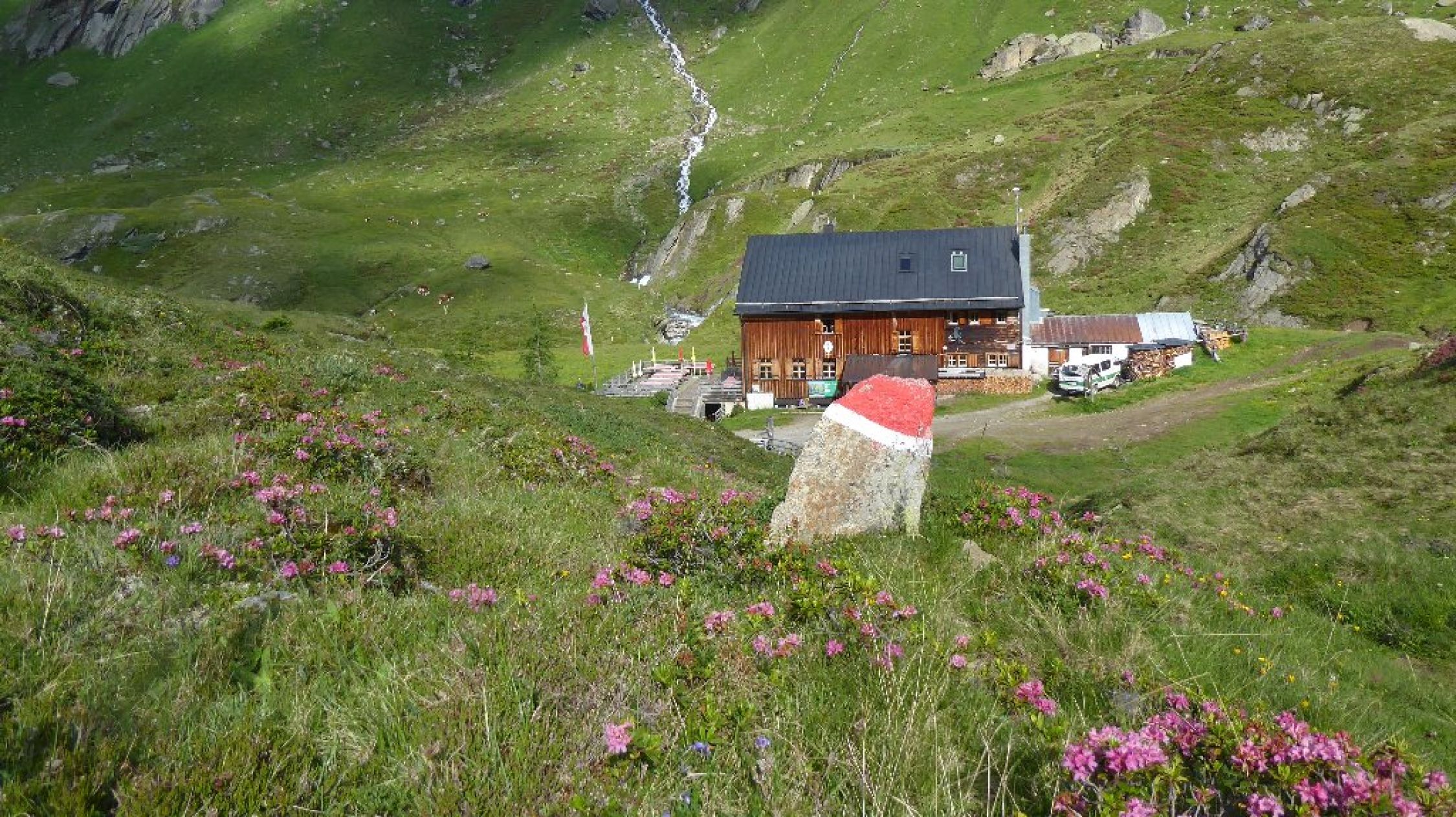 Unsere Vermieter betreiben auch das Venediger Hüttentaxi, habe dies heute auch mal genutzt um auf einen höheren Ausgangspunkt zu gelangen. Trotzdem kamen 8,75 Std. zusammen mit drei 3000er und dem langen Talabstieg. Leider blieb die Aussicht bis in die Dolomiten u.a. Gruppen verwehrt.