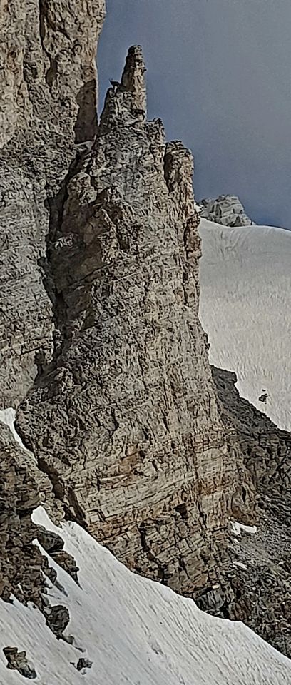 Weisshorn: Wurde schon vor zwei Wochen bestiegen- allerdings von zwei Profis, Peter von Känel und Chrigel Maurer im Rahmen ihres xpeaks-Projekts. Für Normalos sind die Verhältnisse vermutlich erst ab Mitte Juli gut; bisher sind alle Anwärter am Frühstücksplatz umgekehrt, da der Felsgrat danach noch ungewöhnlich viel Schnee hat,