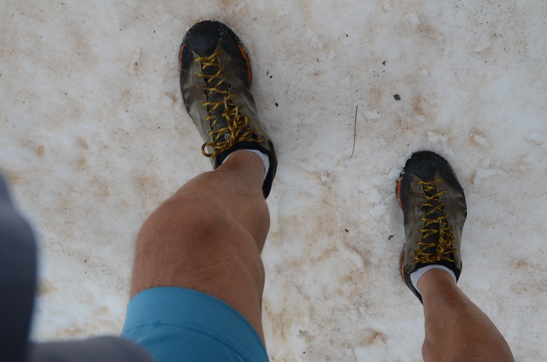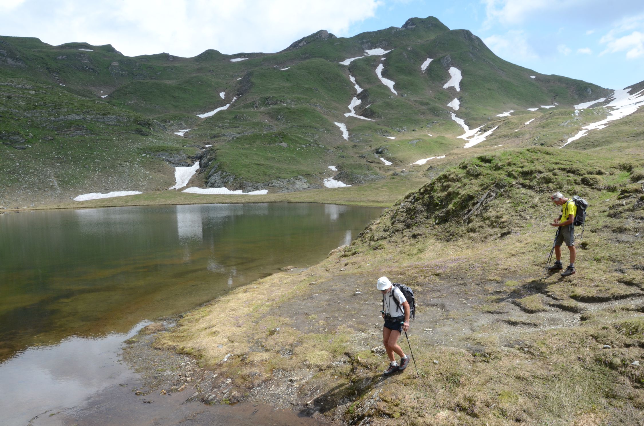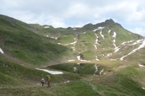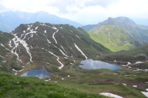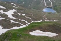 Beste Bedingunge. Es sind lediglich kleine Schneefelder zu queren. Der Aufstieg zur Bretterspitze ist steil und mit Gras versehen. Bei nassem Gras ist äußerst Vorsicht zu walten.