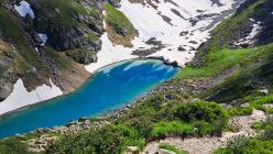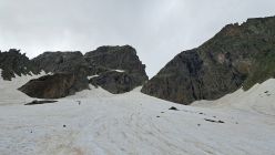 Wir sind durch das Couloir südöstlich des "kleinen Biancograt" abgestiegen - die obersten 50m sind bereits aper und voller loser Geröll, auch ist das Couloir sehr steil und deshalb für den Abstieg nicht mehr zu empfehlen.