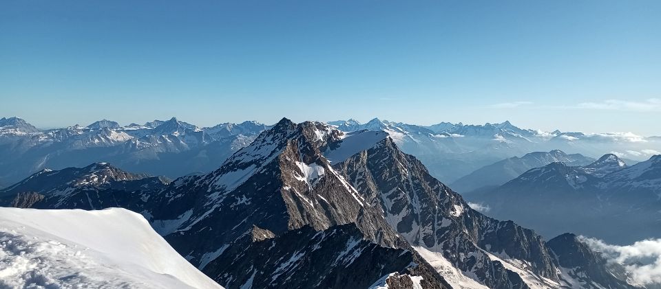 Besser werden die Verhältnisse nicht mehr. Kurz oberhalb der Hütte perfekte Schneefelder bis zum Pass ->durch Spur perfekt zu gehen. Ab dem Pass bis zum Einstieg Südgrat dem Schneefeldern folgen. Steigeisen früh zwingend notwendig. Der Grat ist zu 98 Prozent dann ohne Schnee/Eis und der Firngrat ist in perfektem Zustand.