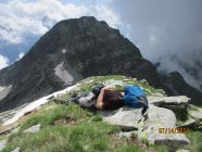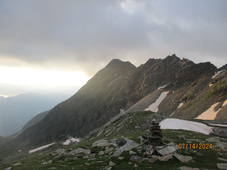 Wohl zwei sehr selten besuchte Gipfelziele., erwartungsgemäß waren wir auch allein. Auch die hübsche Aufstiegsroute von Pian San Giacomo zum Rifugio Pian Grand schien uns wenig begangen, dort haben wir nur zwei Personen im Abstieg getroffen.