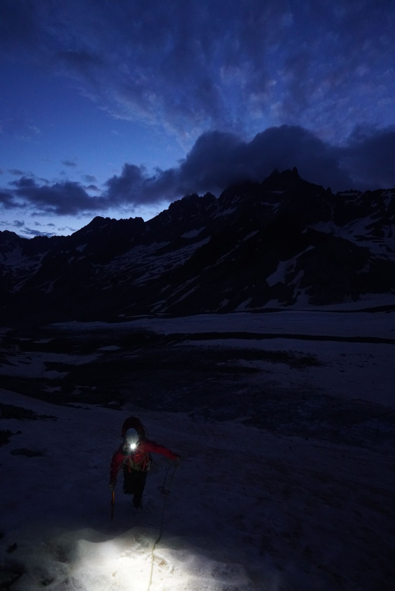 Ab Plan de Bertol problemlos zum Biwak. Der Gletscher ist teils aper und gut zu begehen.