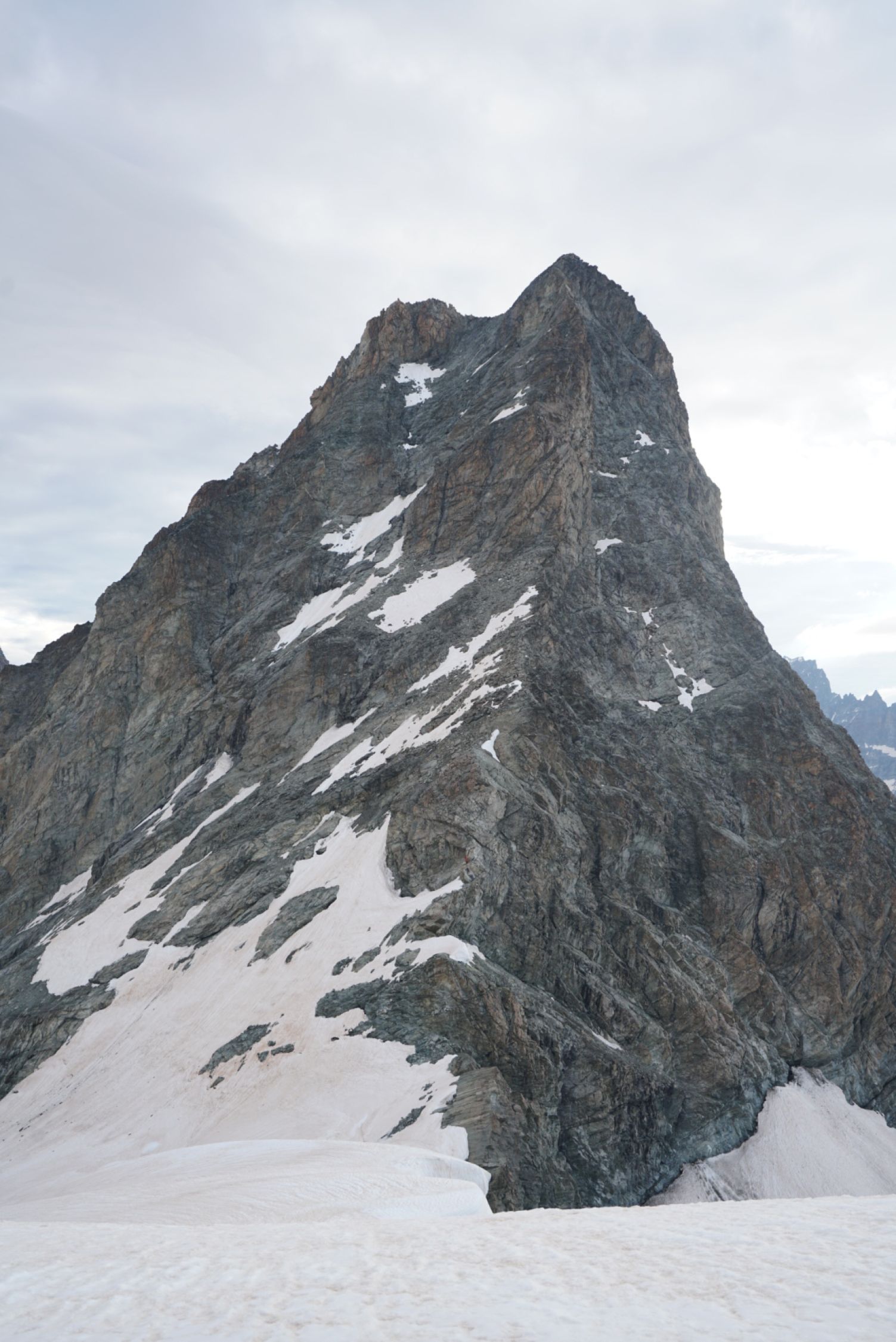Start gegen halb fünf beim Biwak. Der Weg über den Gletscher zum Col de l'Eveque war problemlos, wenig eingesunken trotz nicht ganz gefrorenem Schnees. Der SW-Grat ist komplett schneefrei und gut zu klettern. Abstieg über die NE-Flanke und die Cabane de Vignettes nach Arolla ebenfalls ohne Schwierigkeiten.