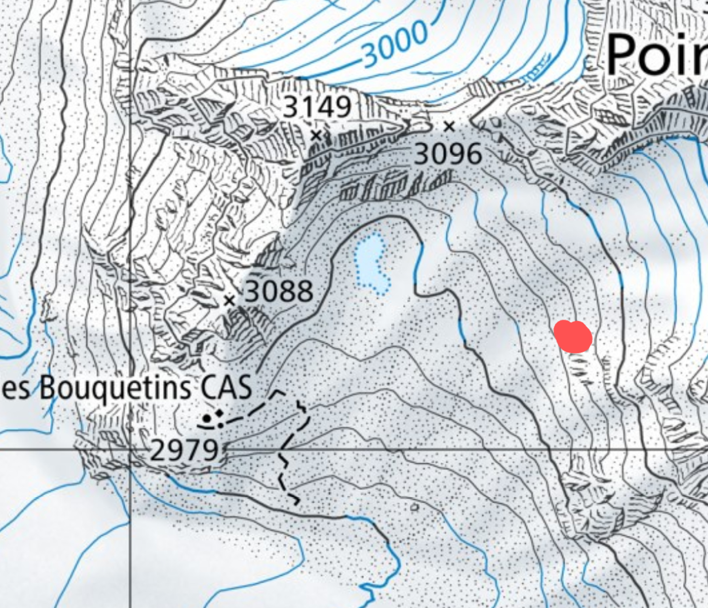 Achtung: Der ursprüngliche Hüttenweg am Talende ist gesperrt und nun ist auch dessen Alternative nicht mehr möglich, die dem Hüttenweg der Cabane der Bertol bis zur Plan Bertol folgte. Oben auf der Querung zum P. 2386 auf 2350 m ist ein riesiger Teil des Weges weggebrochen (siehe Bild der LK). Man kommt nicht auf die andere Seite oder wenn dann nur mit sehr grossen Gefahren. Es gibt aber einen neuen alternativen Weg, der erst im Tal bleibt und weiter hinten hinauf geht. Dieser ist gut blau markiert (siehe auch Bild). Das gleiche gilt auch für den Zustieg zur Cabane de Bertol, da der Abbruch auf dem Weg zu dieser ist.