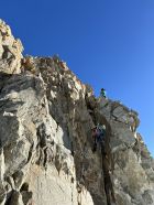 Der erste Felshöcker wurden von den meisten Seilschaften überklettert. Es waren jedoch Spuren erkennbar, dass ein Umgehen möglich ist.