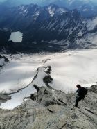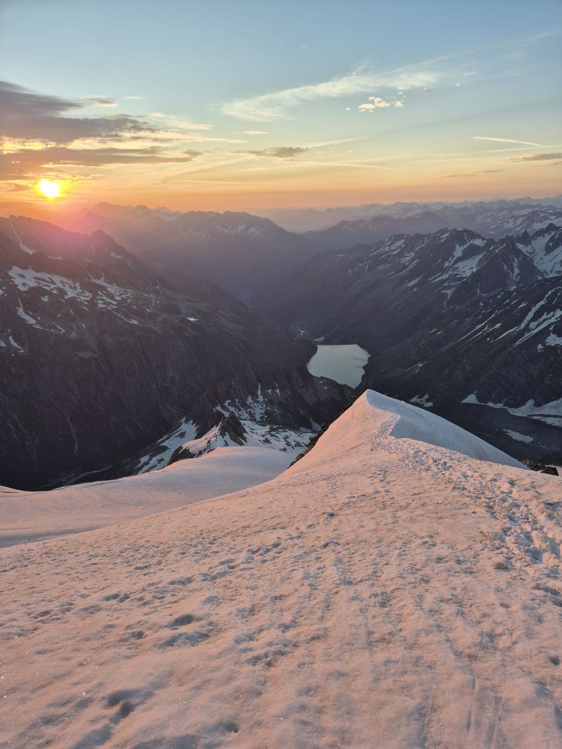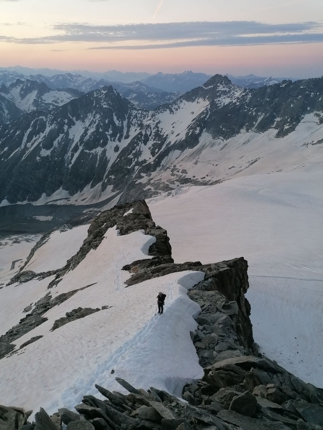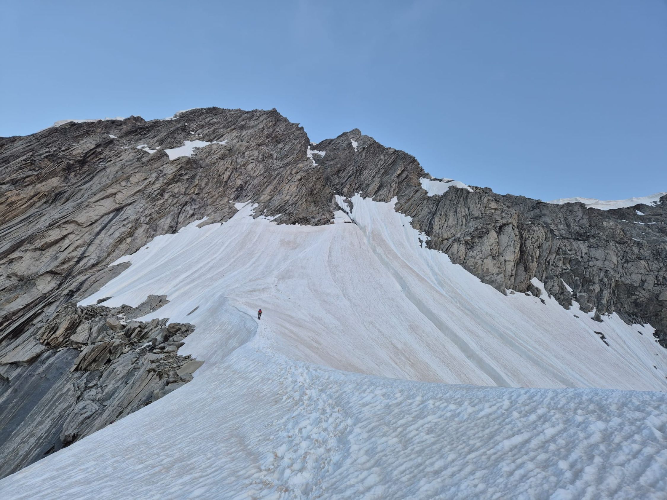 Die Verhältnisse können wohl kaum besser werden. Die warmen Temperarturen verlangen jedoch einen frühen Start. Aufstieg zur Ostrippe über die Schnee-und Firnfelder gehen problemlos. Der Felsen an der Ostrippe ist trocken und wunderbar zum klettern. Die Tour wird durch die Bewirtung des Hüttenteams der Dammahütte perfekt abgerundet. Die Dammahütte ist auch ohne Besteigung des Dammastocks durchaus einen Besuch wert! ;-)
