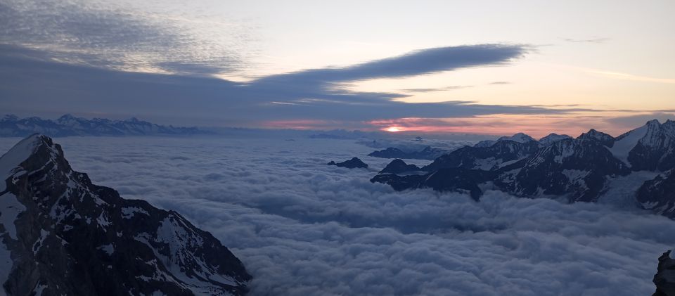 Wenn der Schnee am Firngrat noch bisschen fest wird sehr gute Verhältnisse. Achtung vor Wächten. Weisshorn Hütte Weltklasse.