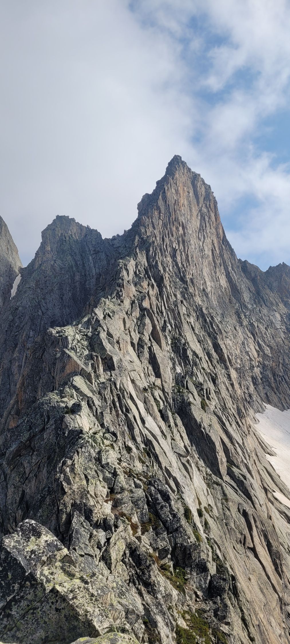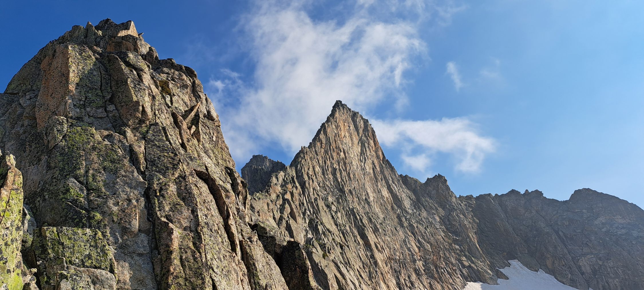 Super Verhältnisse, noch Schneefelder im Zustieg und Abstieg, die das Geröll angenehm überdecken. Wir hatten Pickel&Steigeisen mit, wobei es für geübte Personen auch ohne geht.