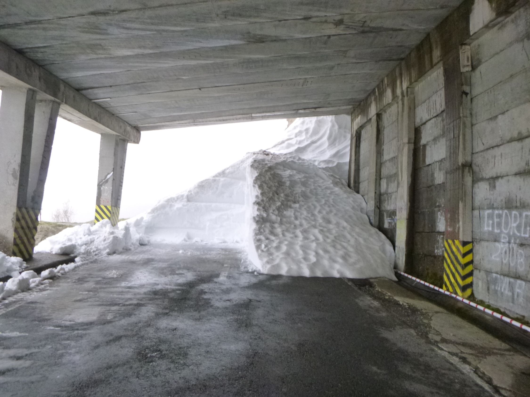 Die Fogarasch-Hochstraße war nur befahrbar auf der Nordseite bis zur Cabana Bâlea Cascadá (1234 m), auf der Nordseite bis zur Süd-Kehre mit der Bergwachthütte Salvamont Argeș (Km 104, 2000 m). Oberhalb war sie noch nicht geräumt.