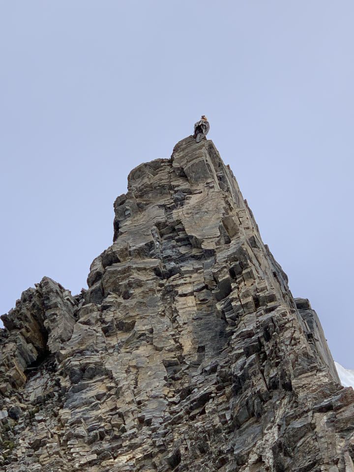 Der Gitzigrat - sicher die spannendste - und anspruchsvollste Route auf das Balmhorn. Die Felsqualität - naja. Man freut sich über die Passagen, in denen einmal nichts entgegegenkommt. Aber auch hier will jeder Griff und Tritt geprüft werden. Mit mehreren Seilschaften definitiv gefährlich. Es befindet sich aber reichlich neues Material (Plättli, Muniringe) in der Route. Ein Satz Cams 0.3 - 1 hilft. Grandios das Ambiente - wuchtig, schroff, ausgesetzt. Das Highlight war sicher ein Bartgeier, der scheinbar ungerührt sein Gefieder auf einem der vielen Türmchen pflegte. Dumm nur, wenn man gerade über jenes Türmchen klettern muss. Was, wenn der nicht weggeht/-fliegt??? Die Frage wurde spätestens dann drängend, als mir noch 2, 3 Züge zum Geier fehlten Zum Glück segelte er dann unmittelbar über meinen Kopf davon (Fotoserie „Persönliches“). Gewaltig!
