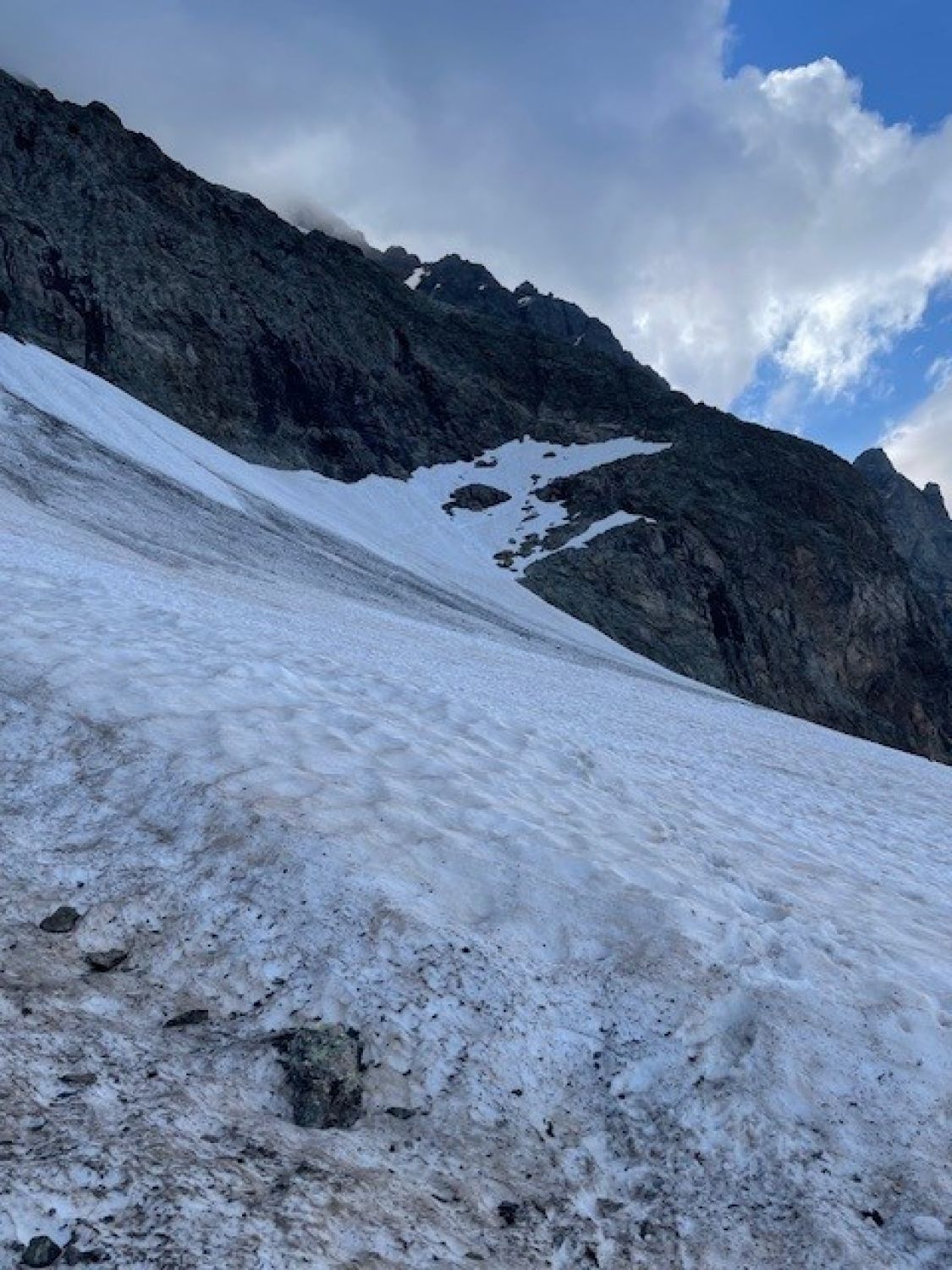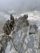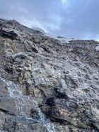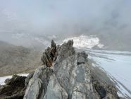 Fange ich aus Grindelwald an, gleich nach den UTMB-Rennfahrern :) Dank guter Spuren und Schneedecke war den Chrinnengletscher problemlos zu überqueren. Sehr schöne und trockene Felsklettern auf dem ganzen Grat! Bin um 11 Uhr auf dem Gipfel, leider war es ganz bewölkt über den Wettersattel und ohne Aussicht. Doch sieht es besser im Nachmittag. Der Schnee war am morgen noch leicht weich. Steigeisen waren nützlich für die Chrinnengletscher Überquerung und auch das Firnfeld direkt nach dem Sattel.