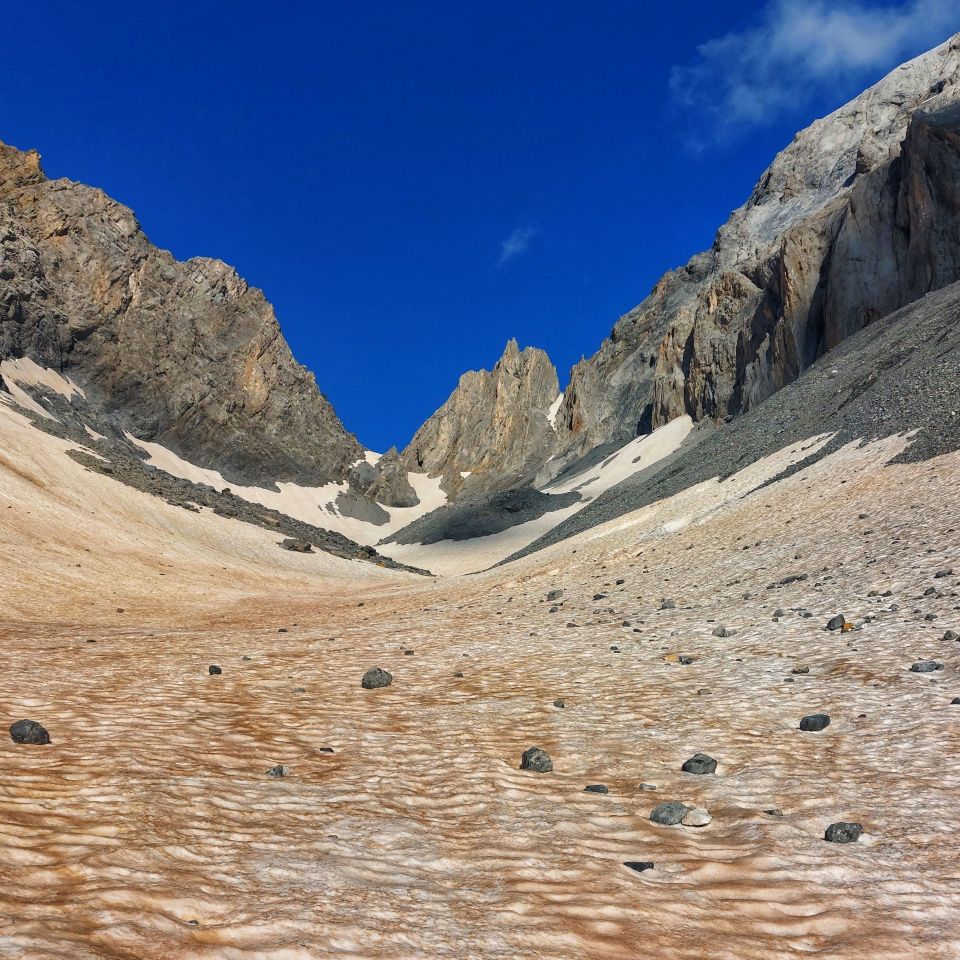 Einsame und fordernde Tour durchs Val Frisal auf den Piz Frisal 3291m und wie beschrieben über den Frisalgletscher weiter dem Südgrat folgend auf den Bifertenstock. Wie erwartet viel loses Gestein und brüchigen Fels angetroffen. Die Rinne rechts der Barcun Frisal sut im Anstieg im oberen Teil noch mit Schnee gefüllt, Steigeisen anziehen. Die Ostrinne runter auf den Frisalgletscher noch gut mit Schnee gefüllt und gut zu gehen im Abstieg. Bergschrund ab Frisalgletscher ohne Probleme.