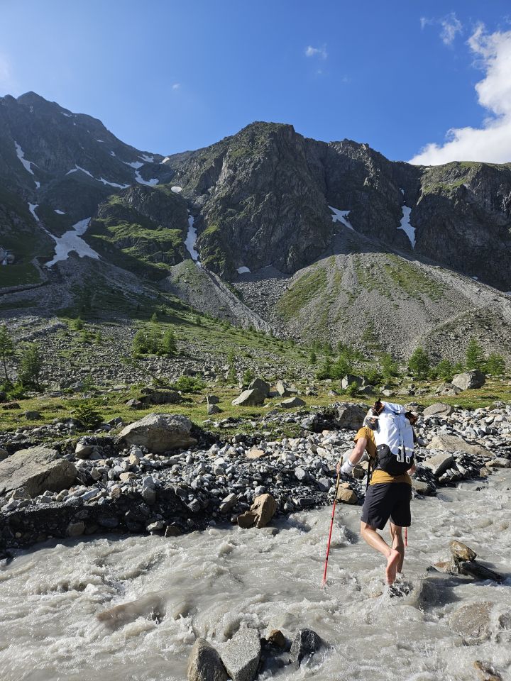Zustieg problemlos möglich, lediglich den Leitibach mussten wir barfuss queren, da wir keine schmale Stelle finden konnten. Im markanten Couloir auf Höhe ca. 2100 ist noch ein unterhöhltes Schneefeld. Daher den Bach besser etwas unterhalb des Couloirs queren und über Schrofengelände, wie laut Routenbeschreibung, weiter folgen. Grat komplett trocken, nordseitig teilweise feuchtes Moos, was zusammen mit dem teilweise bröckeligen Fels das Kraxeln vorsichtiger werden lässt. Wir sind alles seilfrei gegangen und haben nur die Schlüsselstelle im Schlussteil des Grates mit Seil gesichert. Standplatzsicherung unten an zweifelhaftem Stand aber guter Stehfläche, oben solide Kopfschlinge für Standplatz. Wir hatten kein Sicherungsmaterial ausser Bandschlingen dabei, was machbar ist, aber ein sichers Vorsteigen an dieser Stelle zwingend erfordert. Friends wären gut zu legen gewesen.